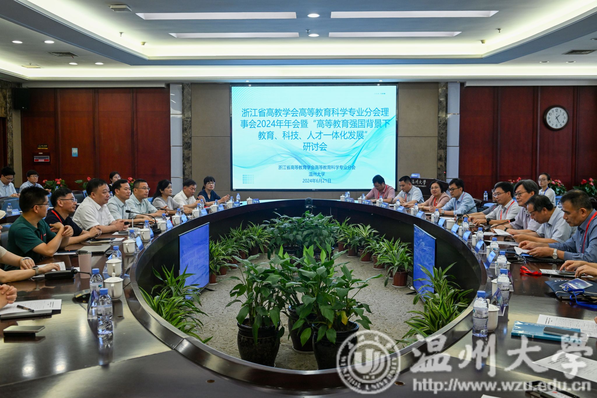 6月21日,浙江省高等教育学会高等教育科学专业分会(以下简称为分会)理事会2024年年会暨“高等教育强国背景下教育、科技、人才一体化发展”专题研讨会在我校顺利召开,来自省内各高校的嘉宾代表及我校部分师生参加会议。浙江大学社会科学学部副主任、分会理事长顾建民教授,浙江师范大学发展规划处处长、分会副理事长王宪平教授,分会各常务理事、理事代表等出席开幕式,开幕式由杭州师范大学中国教育现代化研究院首席专家、分会副理事长季诚钧教授主持。校长赵敏致辞。