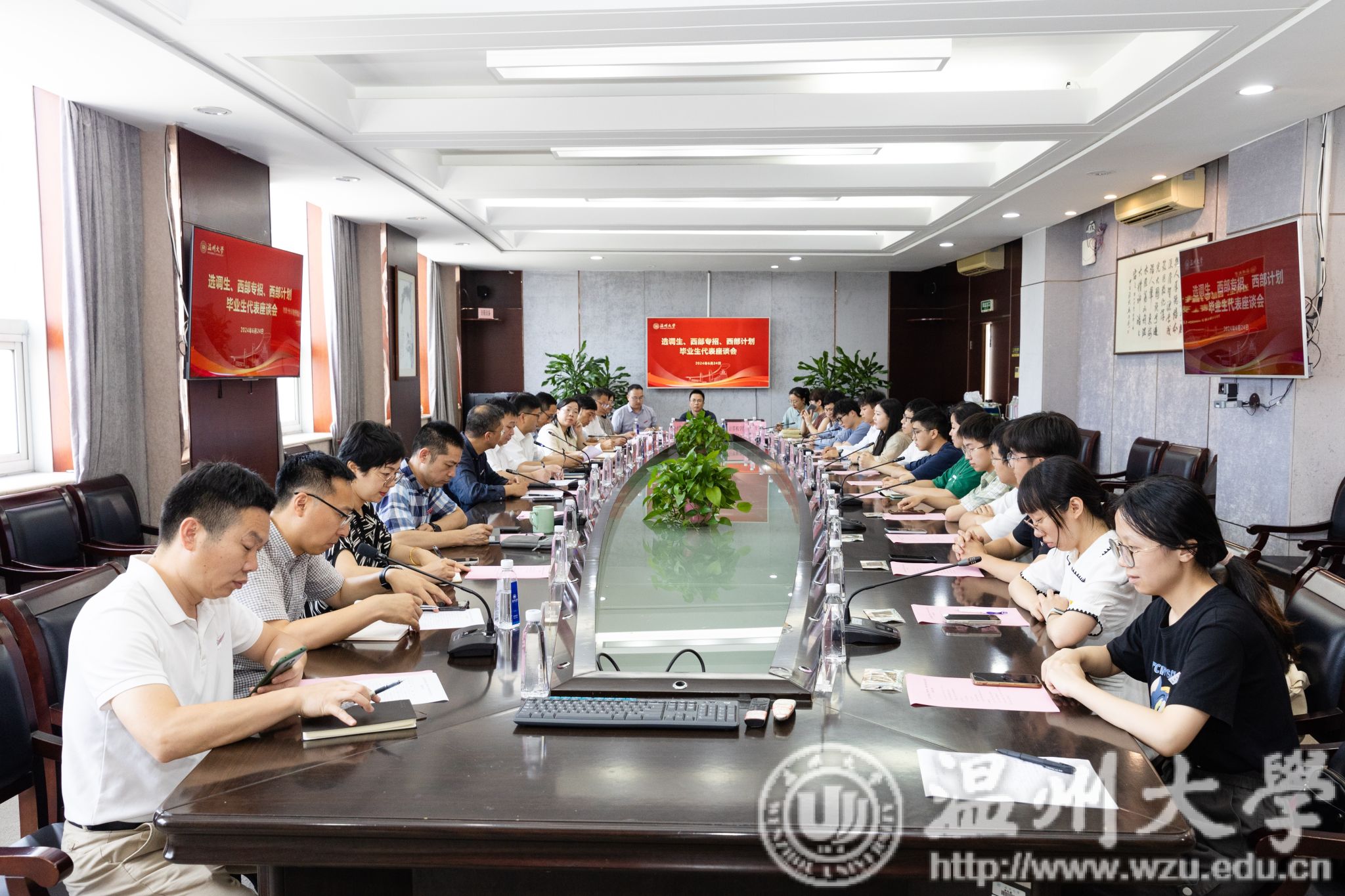 6月24日下午,我校召开选调生、西部专招、西部计划毕业生代表座谈会,校长赵敏、相关部门负责人、学院教师代表和毕业生代表参加座谈会。校党委副书记庄兴忠主持。