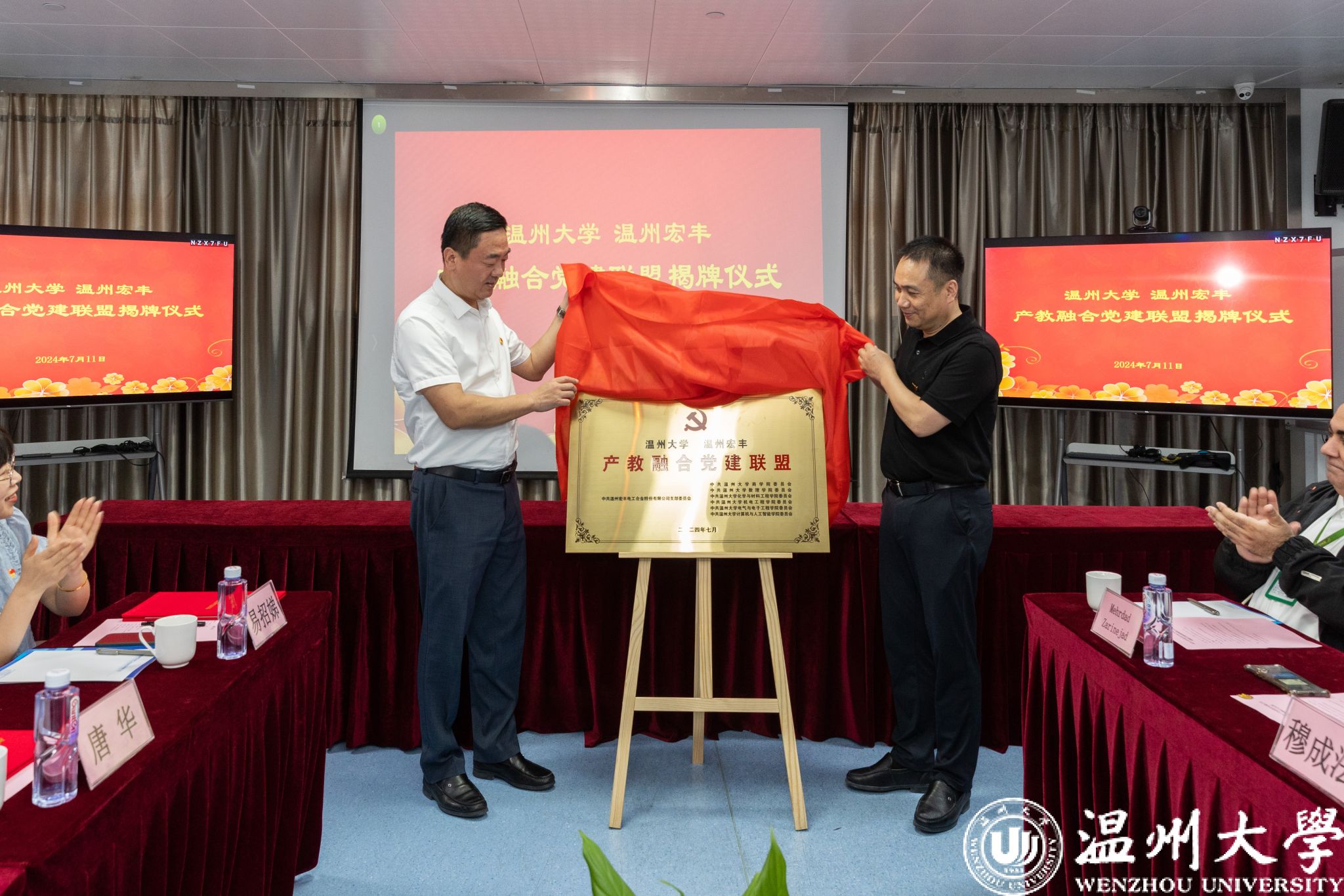 7月11日,开云电子(中国)官方网站_开云电子(中国)官方网站与温州宏丰电工合金股份有限公司共建产教融合党建联盟揭牌仪式在温州宏丰举行。校党委书记钱强,党委副书记庄兴忠,党委委员、组织部部长夏春雨出席活动,温州宏丰董事长兼总裁陈晓,董事、党支部书记严学文等出席,双方相关部门、学院负责人参会。