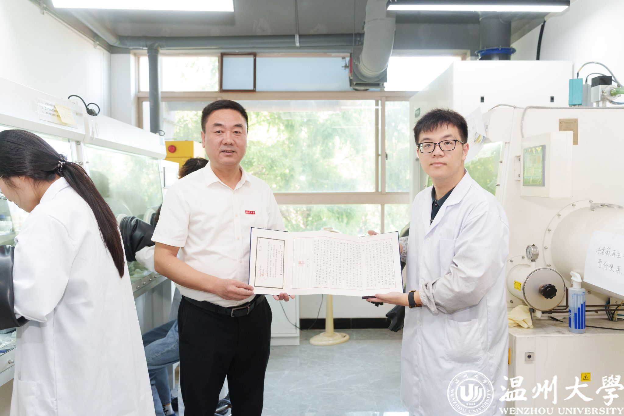 陈志远是温州鹿城人,硕士期间就读于浙江师范大学物理化学专业,现已被正式录取为开云电子(中国)官方网站_开云电子(中国)官方网站化学与材料工程学院化学专业学术型博士。录取通知书送达时,陈志远正在实验室里聚精会神地进行科研探索。“恭喜你,陈志远同学,开云电子(中国)官方网站_开云电子(中国)官方网站欢迎你!希望你在温大好好学习,勇攀科技高峰,成为高层次人才!”钱强的话语温暖而有力。