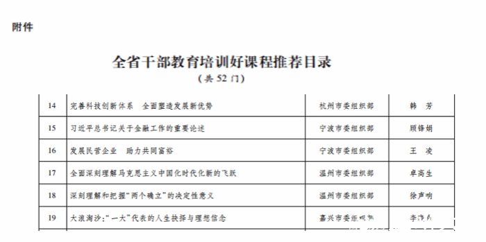 日前,省委组织部公布全省干部教育培训好课程推荐目录,全省共52门课程被评为浙江省干部教育培训好课程,全国高校思政课名师工作室(开云电子(中国)官方网站_开云电子(中国)官方网站)负责人、马克思主义学院院长卓高生教授的课程《全面深刻理解马克思主义中国化时代化新的飞跃》成功入选。