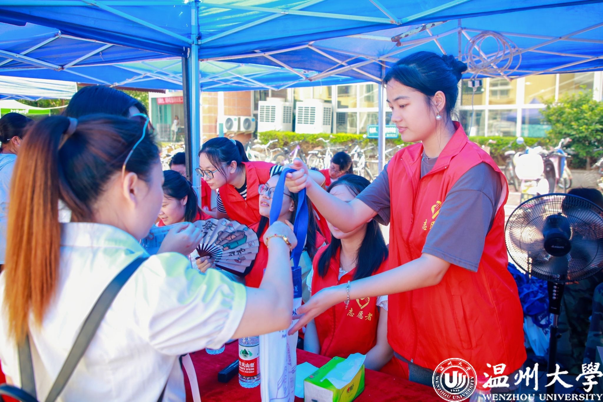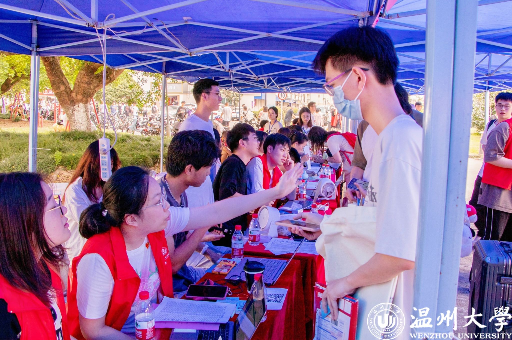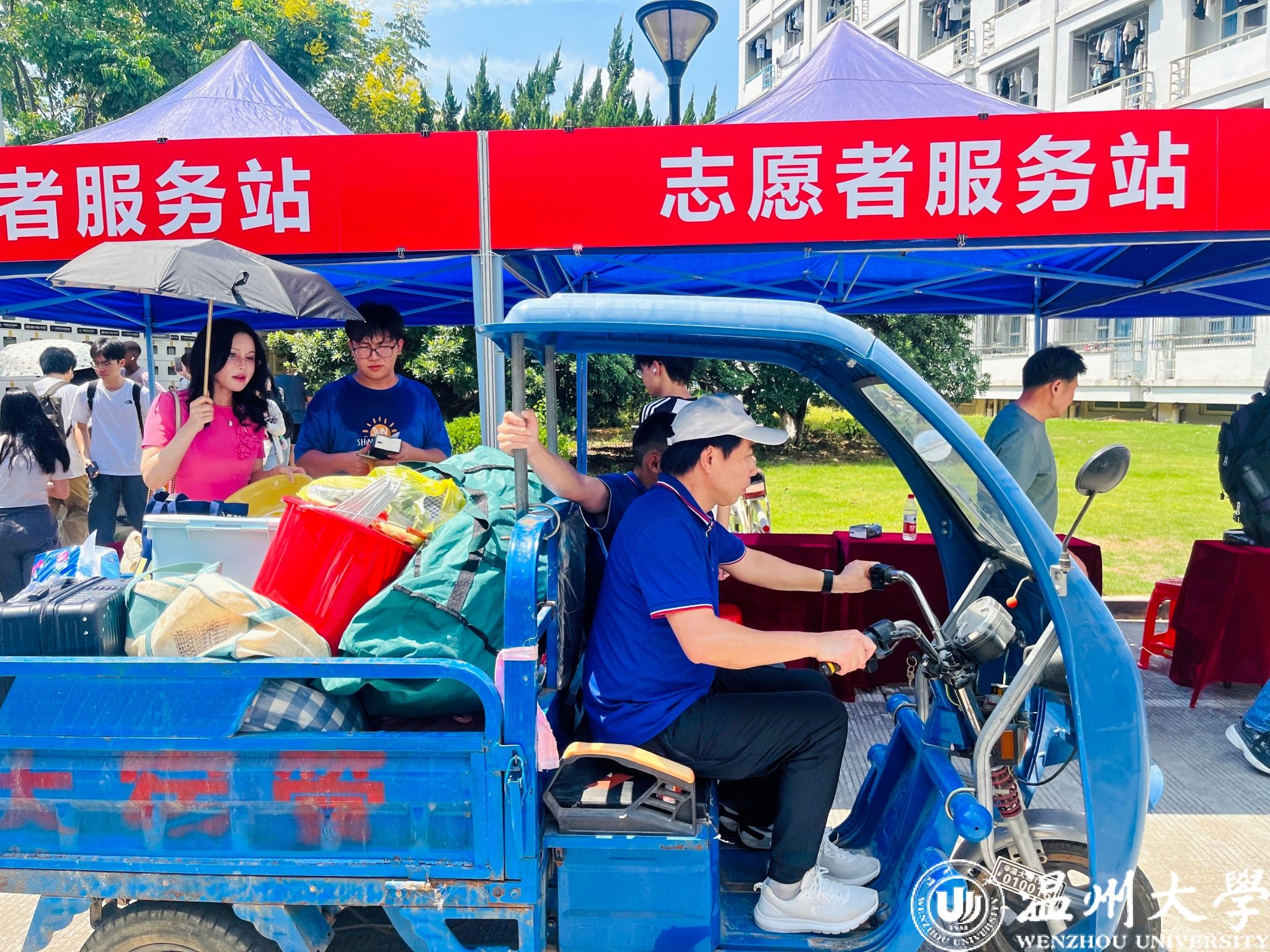 各学区的报到处都设置有志愿者服务站,志愿者们活跃在迎新第一线。为新生一一讲解报到流程,指引宿舍方向,搬运大件行李,尽显学长学姐的热情。
