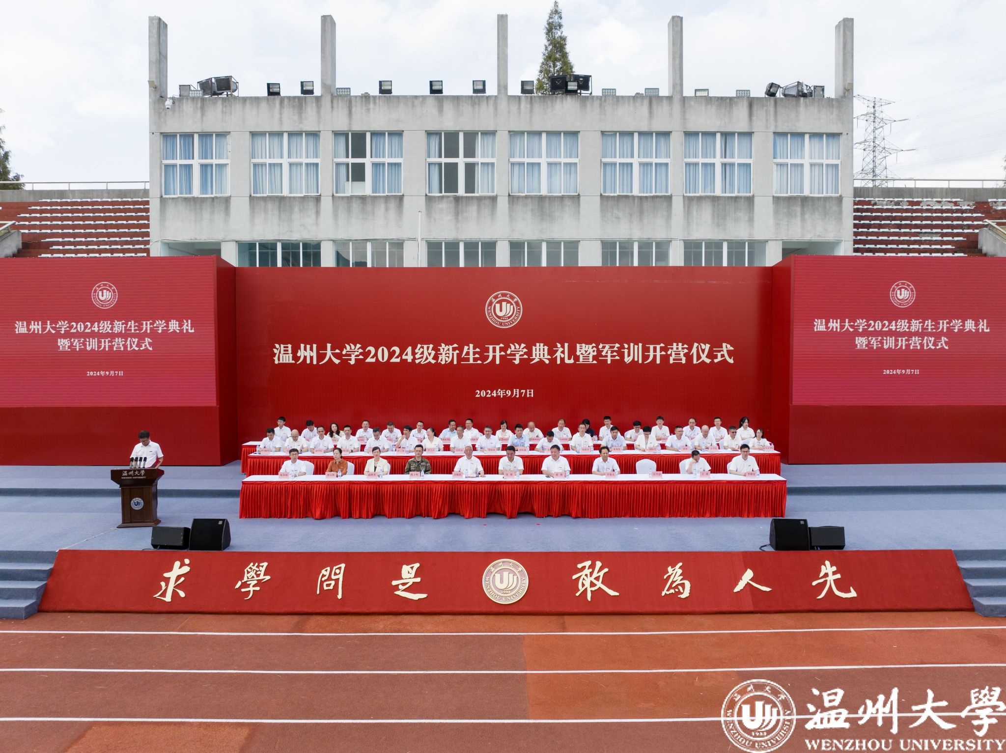 青春,如艳阳下百卉之萌动,如星火汇聚成希望和力量。9月7日上午,2024级新生开学典礼暨军训开营仪式在南校区运动场隆重举行,开启2024级新生在温大求学的新篇章。全体校领导,各学院、相关部门负责人,新生班主任,全体辅导员,2024级新生,教师代表,高层次人才代表,校学生会主席、研究生会主席等参加典礼。校党委副书记庄兴忠主持。