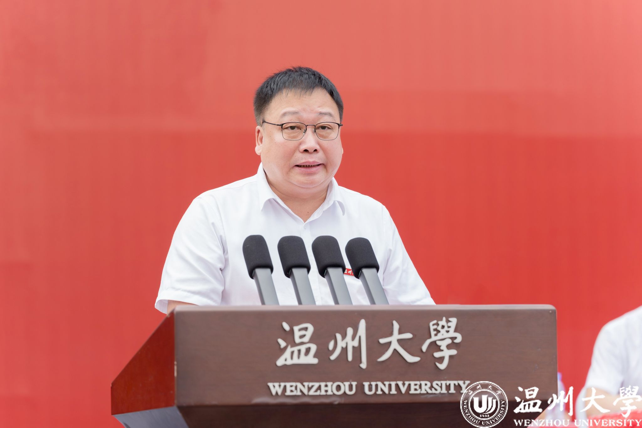 “希望你们传承‘求学问是,敢为人先’的校训精神,在高山大海上抒写豪情壮志,在日月星辰下反躬自省,在瓯江之畔、罗山之麓,书写属于你们的流光溢彩的人生!”赵敏为新生们送上最温馨、最诚挚的祝福。