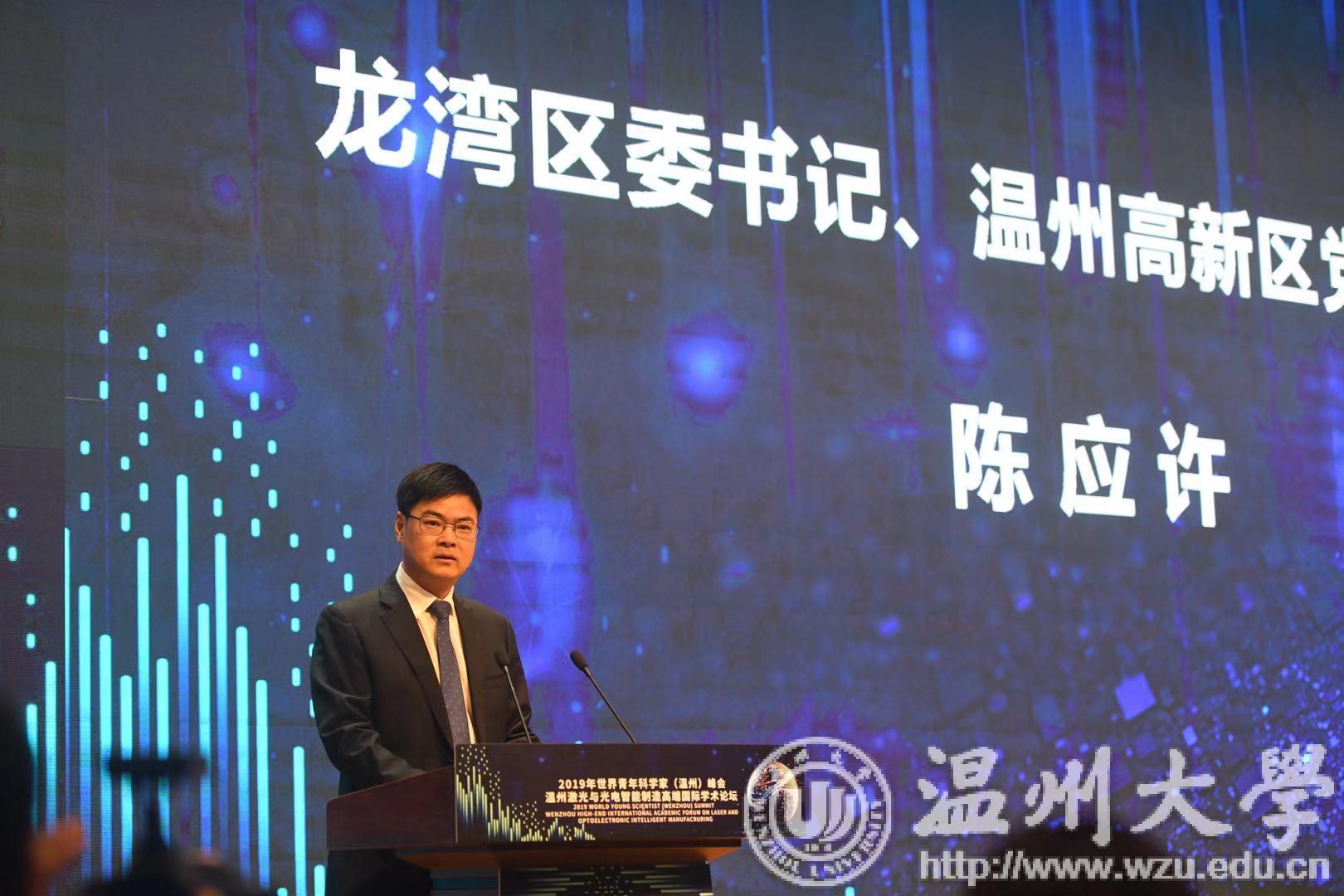 温州市龙湾区委书记陈应许首先致辞。他指出,温州是“21世纪海上丝绸之路”的重要节点城市,激光光电是龙湾区重点扶持发展的三大主导产业之一,温州高新区不断完善产业政策、全力优化营商环境,推动激光光电等智能制造产业蓬勃发展。他希望各位有才之士进一步认识和了解温州高新区,并诚挚欢迎各位来到这片热土施展才华、成就梦想。