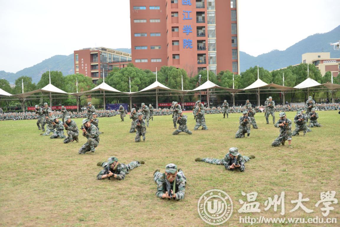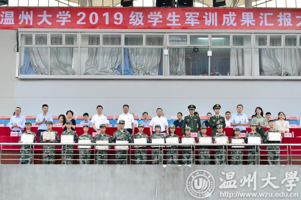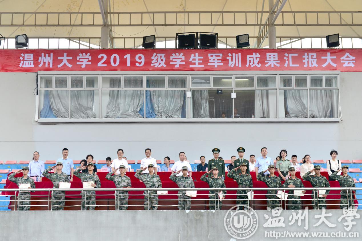 10月14日下午,我校2019级新生军训成果汇报大会在北校田径场隆重举行。校党委书记谢树华、党委副书记庄兴忠、武警温州支队政委赵海艇、政治工作处主任项延伞、相关职能部门负责人及各学院分管书记参加大会。大会由学生工作部部长张敏主持。