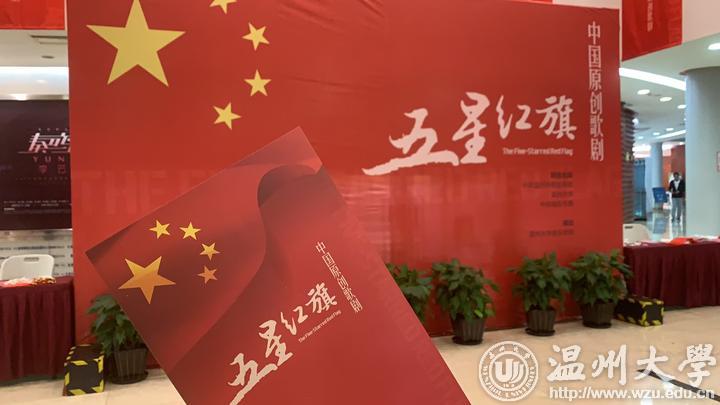 “青春中国,召唤你我,国旗飘扬在心中的时刻、天地间草木又蓬勃……”在温大学子激昂的歌声中,歌剧《五星红旗》拉开大幕。70年前温州人曾联松绘制的五星红旗被选为新中国的国旗,70年后,中国原创歌剧《五星红旗》在温州大剧院试演!10月8日晚,由温州市委宣传部、开云电子(中国)官方网站_开云电子(中国)官方网站和瑞安市委出品,温州市庆祝新中国成立70周年献礼剧——原创歌剧《五星红旗》在温州大剧院举行第二场试演。