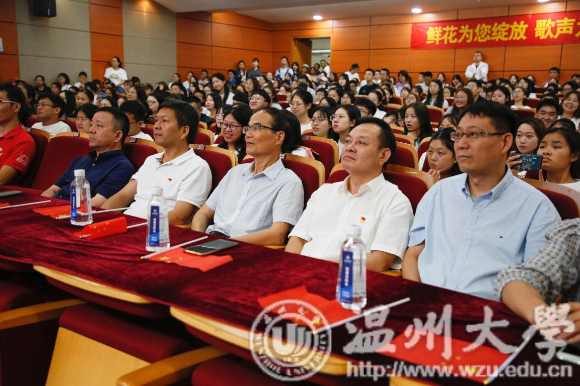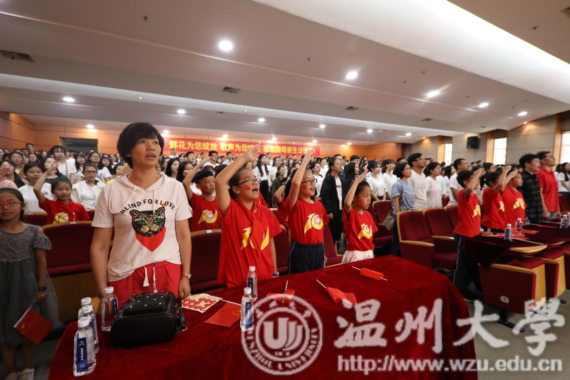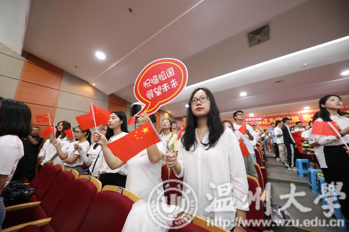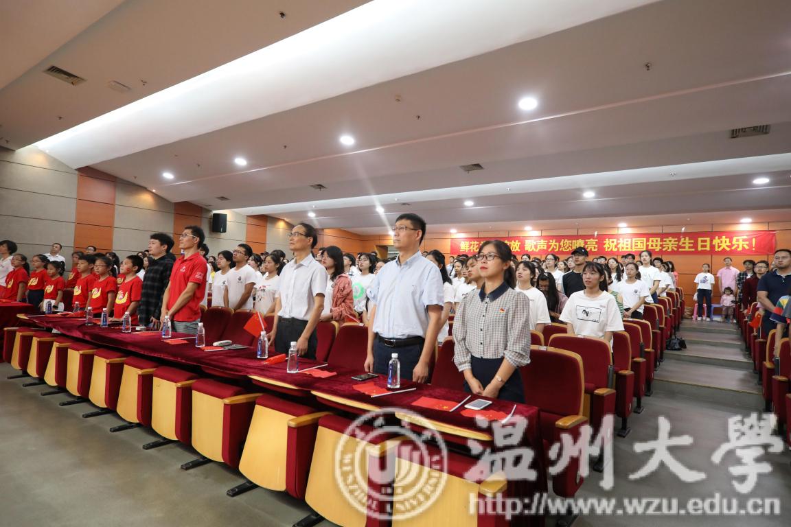 中华人民共和国壮丽前行,迎来了七十周年诞辰。10月1日上午,我校在南校区岩松堂雁山厅举办了温大师生观看国庆70周年庆祝活动,共同为祖国庆生。校领导谢树华、庄兴忠、潘玉驹等与师生一同参加庆祝活动。