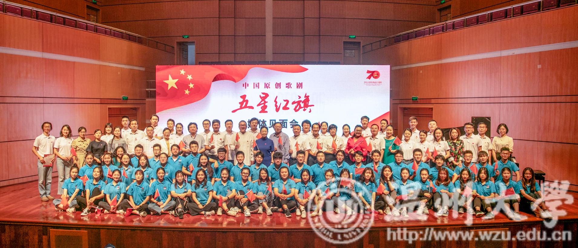 9月27日,中国原创歌剧《五星红旗》媒体见面会在温州大剧院召开。该剧由我校和温州市委宣传部、瑞安市委共同出品,是为庆祝新中国成立70周年而特别筹划的重点献礼剧目。温州市委常委、宣传部部长胡剑谨,市委宣传部常务副部长邱小侠,校党委书记谢树华,党委委员潘玉驹以及剧组主创团队、导演组、主要演员等出席了媒体见面会。校党委副书记庄兴忠主持。