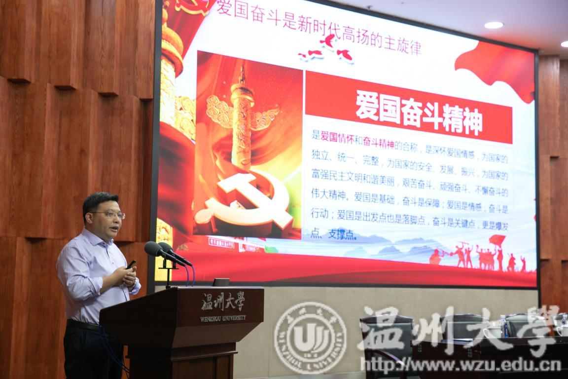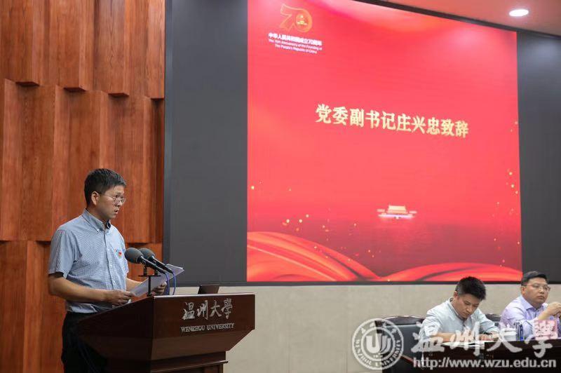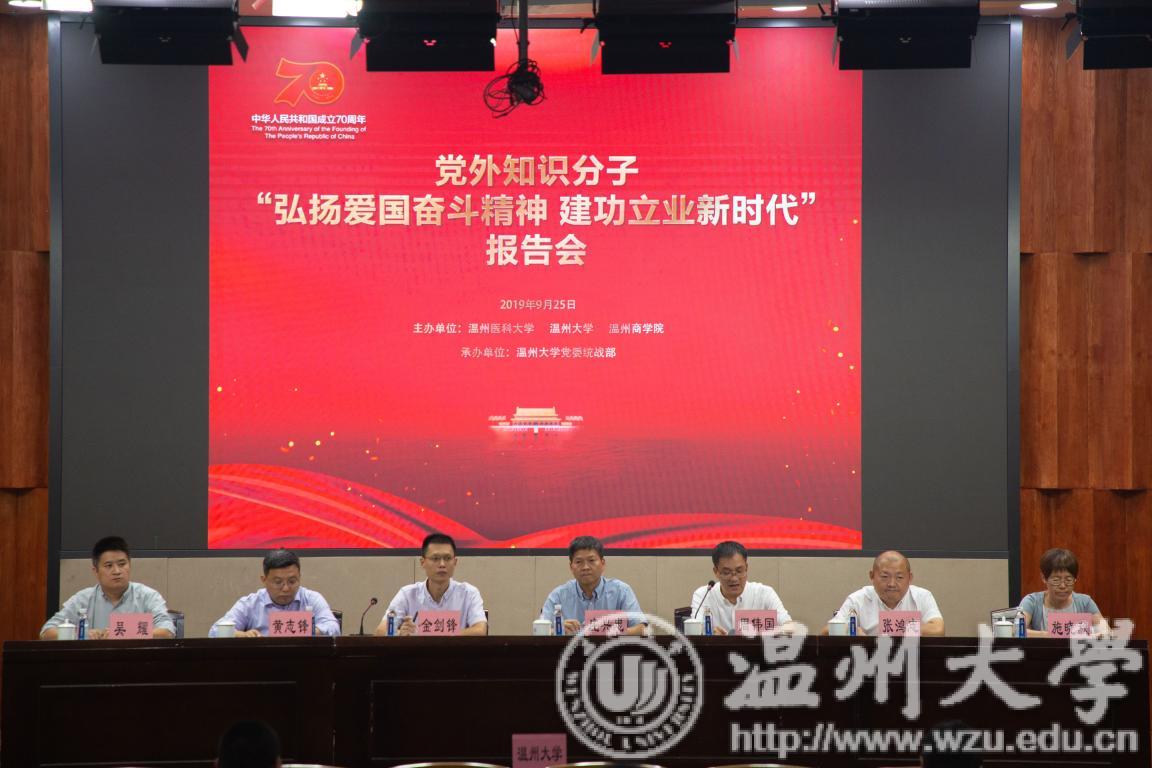 9月25日下午,由开云电子(中国)官方网站_开云电子(中国)官方网站、温州医科大学、温州商学院联合主办,开云电子(中国)官方网站_开云电子(中国)官方网站党委统战部承办的温州高校片区党外知识分子“弘扬爱国奋斗精神,建功立业新时代”宣讲报告会在我校岩松堂隆重举行。校党委副书记庄兴忠参加会议并致辞,党委统战部长周伟国主持会议。
