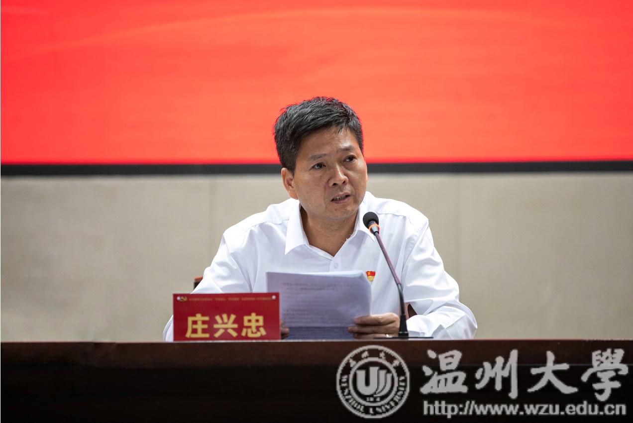 瓯江学院党委书记、副院长王定福同志作题为《不忘初心、牢记使命,以实际行动推进全面从严治党》的重点发言。他与大家分享了瓯江学院党委在全面从严治党路上的“瓯江格局”、“瓯江路径”、“瓯江模式”。