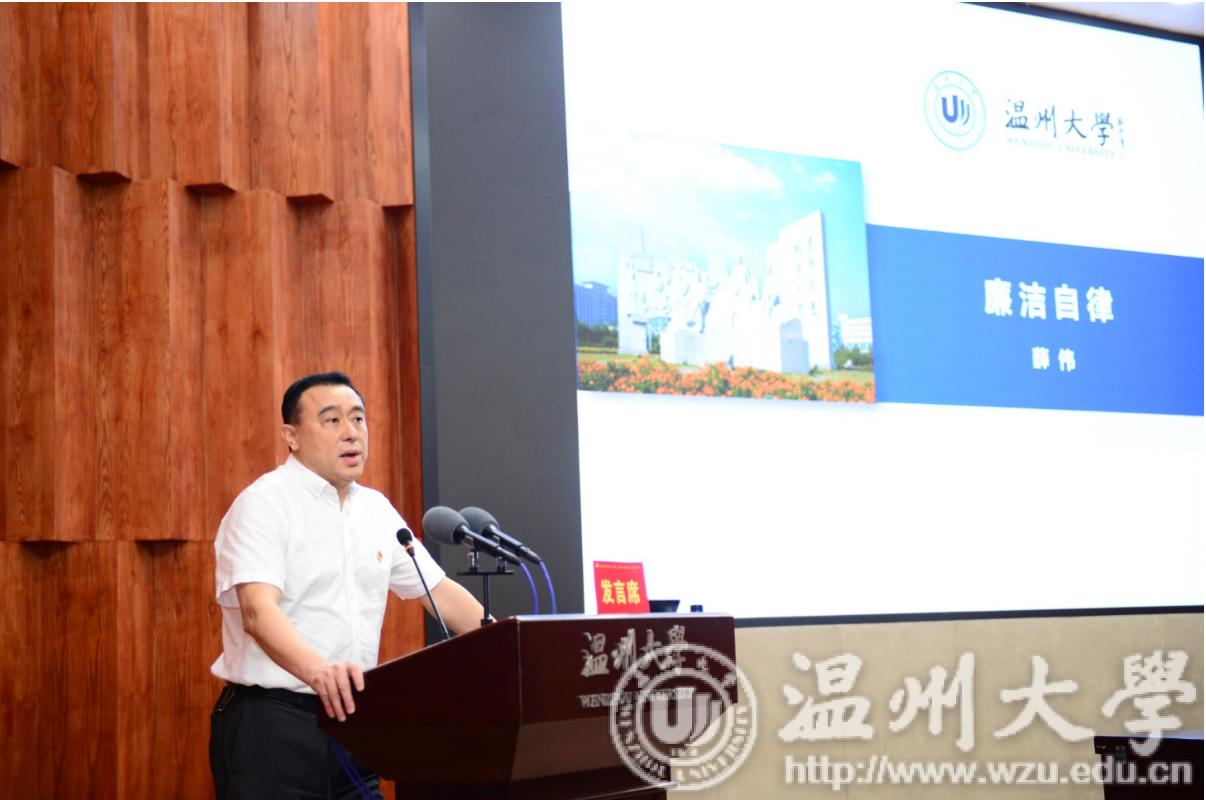 副校长、党委委员薛伟同志作题为《廉洁自律》的重点发言。他通过“扪心而律、习得而律、求新而律”详细阐述了廉洁自律的三个层面。他的“扪心三问”引起在场同志们的共鸣,他强调领导干部要时刻注意自律自醒,以实现自我净化、自我完善、自我革新、自我提高。