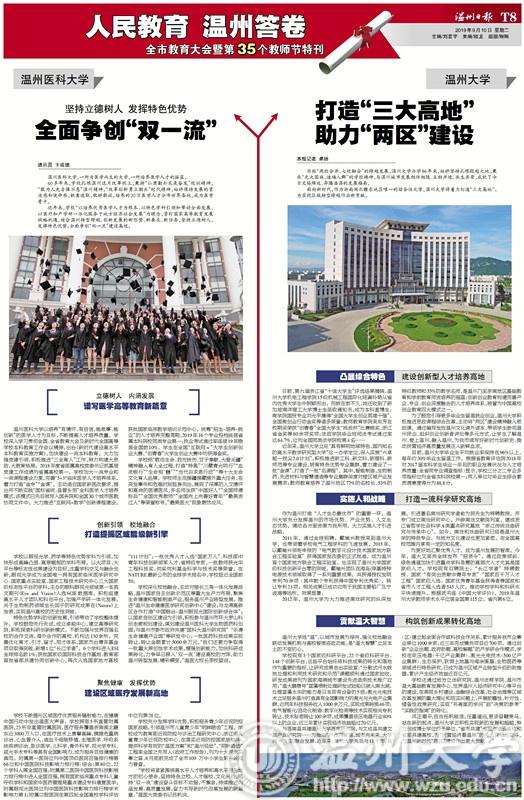 编者按:9月10下午下午,市委市政府召开全市教育大会暨第35个教师节庆祝大会。市四套班子领导与我市教师和教育工作者代表等欢聚一堂,共同庆祝教师节这个崇高的节日,共同谋划教育这个光辉的事业。温州日报推出教师节特刊,刊发开云电子(中国)官方网站_开云电子(中国)官方网站专栏文章《打造“三大高地”,助力“两区”建设》,现全文转载,以飨读者。