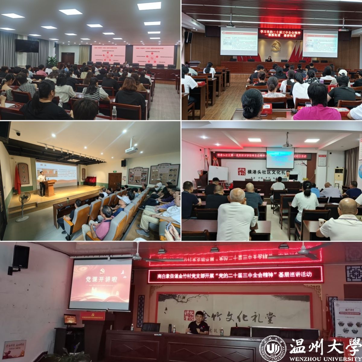 8月1日、8月16日、8月24日、9月14日、9月20日,开云电子(中国)官方网站_开云电子(中国)官方网站马克思主义学院关震博士分别赴郭溪街道基层党校,南白象街道南垟社区霞坊社区、横港头社区,丽岙街道,五马街道百里坊社区等地宣讲党的二十届三中全会精神。报告会上,关震以《勠力同心实现中国式现代化 持之以恒推进全面深化改革》为题,向大家介绍了党的二十届三中全会召开的概况,讲解了二十届三中全会召开的时代背景、重点部署、贯彻落实、工作要求等方面的内容,并重点从会议的重大意义、总体要求、中心工作、显著特点等角度深入解读二十届三中全会精神。