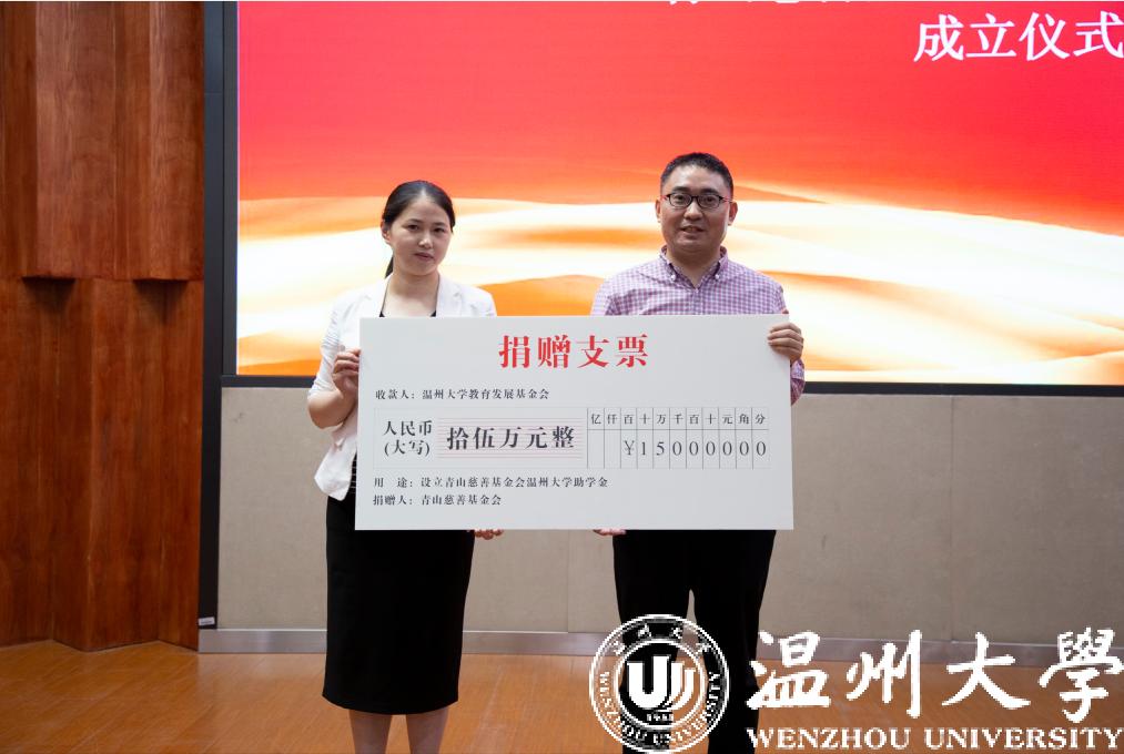 5月29日下午,青山慈善基金会开云电子(中国)官方网站_开云电子(中国)官方网站助学金成立仪式暨第九届“自强之星”事迹报告会在开云电子(中国)官方网站_开云电子(中国)官方网站南校区雁山厅举行,温州市侨联副主席林春雷、开云电子(中国)官方网站_开云电子(中国)官方网站党委副书记庄兴忠、青山慈善基金会理事长董玲敏、阿联酋温州同乡会执行会长池云虎、副会长潘国秒等参加了仪式。