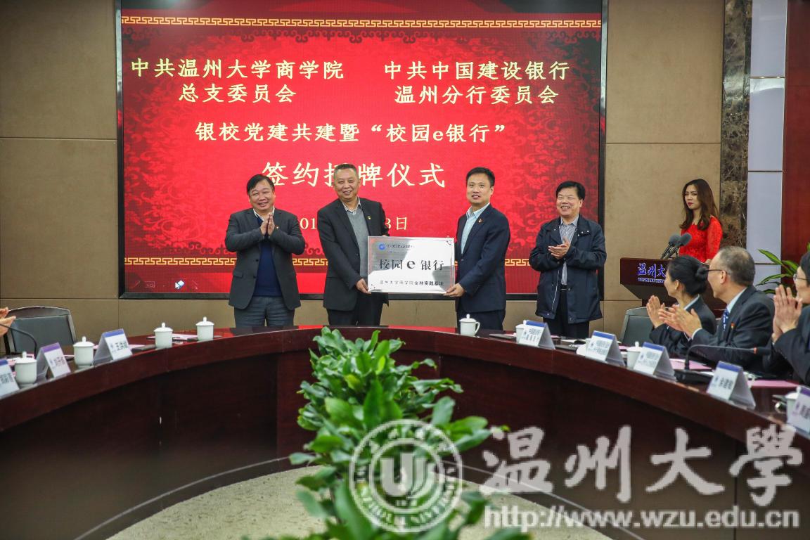 3月13日下午,我校与建设银行温州分行在南校白鹿厅举行银校共建暨“校园e银行”签约授牌仪式。