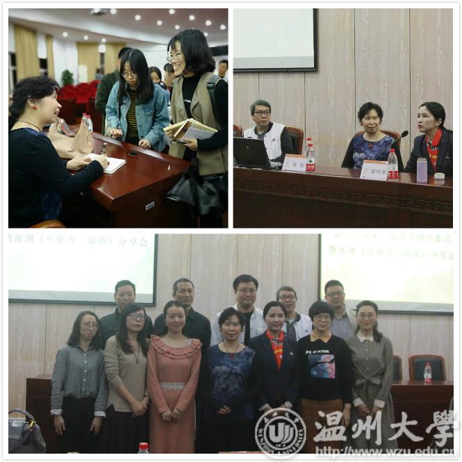 接下来驻校作家张翎讲述了《生命力三部曲》的创作历程。她表示《余震》的灵感来源于一些对于唐山大地震中的幸存者的采访,这些生命所经历的痛有直击人心的力量,而《死着》与《胭脂》两部作品能够让人感受到命运的难以驾驭。随后书评人绿茶与小说家潘向黎分别就张翎的作品谈了自己的看法。绿茶称,张翎对作品内核的情感投入深刻,通过字里行间的表述能感受到这种震撼人心的力量;潘向黎称,通过张翎的作品,能感受到她的创作激情与情感时刻饱满全面,给自己的写作带来很多灵感。