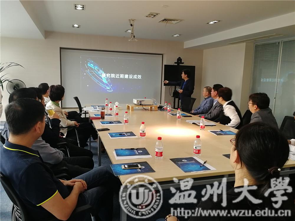 汇报会上,李峰平向与会领导详细介绍了研究院成立以来的成果,重点介绍了校企合作工作的进展:研究院与共建单位温州欧利特机械设备有限公司合作的智能激光设备建设项目列入浙江省2018年首批“重大产业项目”,其用地已经获得批复并动工;与浙江三星机电设备有限公司合作的联合技术研发与示范推广项目“智能驾驶汽车伺服制动系统研发与推广”被列为2019年度省重点研发计划项目等。