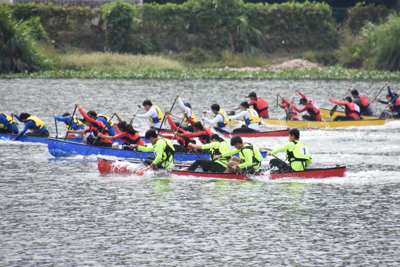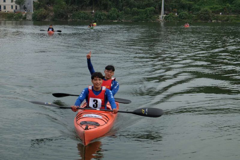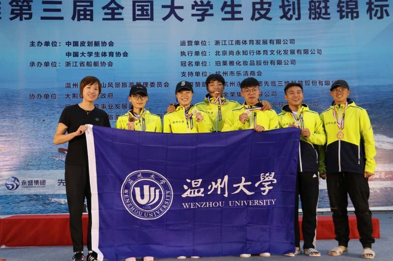 我校体育学院水上运动队共派出21名参赛队员,在领队叶建强和教练朱敏圆的带领下,参加了本次赛事11个小项的比赛,经过2天的激烈角逐,我校学生不畏强手,最终获得4金1银3铜,共计8枚奖牌的好成绩,获得团体总分第一。取得了我校水上训练队在全国大学生皮划艇锦标赛中的最好成绩!
