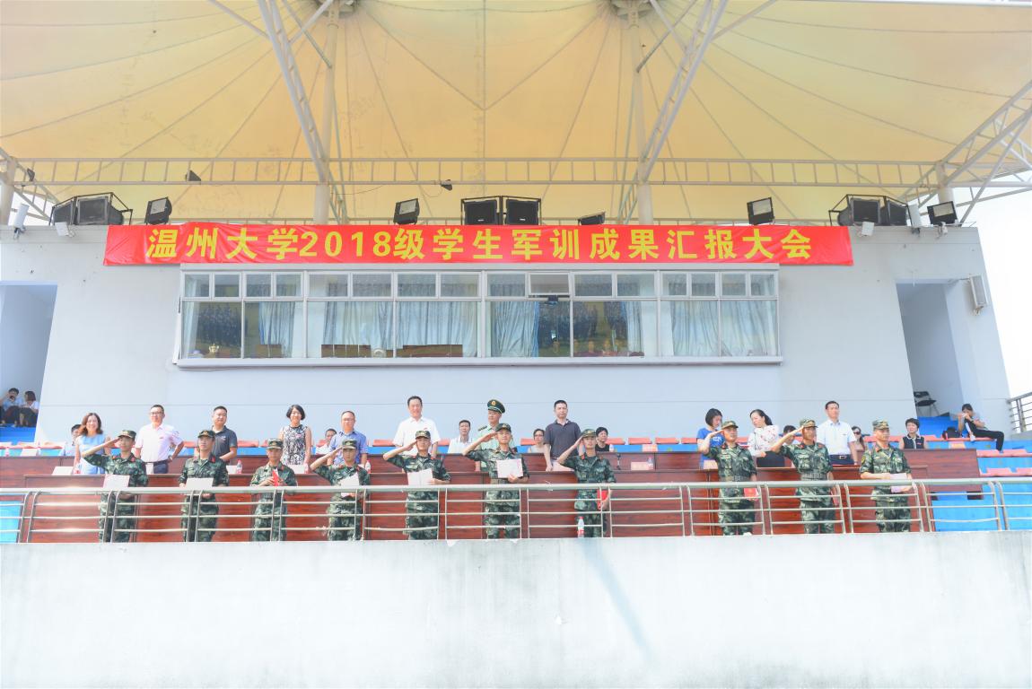 9月21日上午,我校2018级学生军训成果汇报大会在此隆重举行。同学们用出色的队列表现交上了满意的答卷,为军训画上了圆满的句号。校党委副书记牟德刚,温州武警支队第一大队大队长金东波,军训工作领导小组成员,各学区书记,各学院分管书记出席了大会。汇报大会由人武部副部长高红星主持。