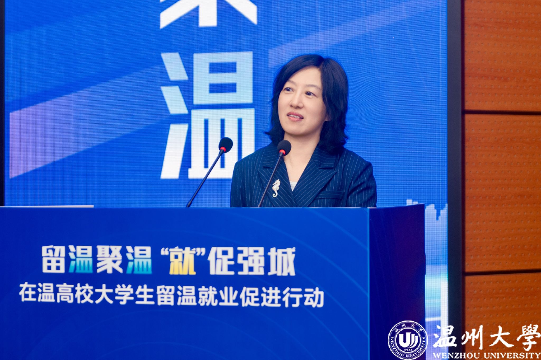 章月影表示,高校大学生留温就业促进行动是促进高校毕业生留温就业、推动我市冲刺“双万城市”的有效载体和关键抓手,希望各高校、各企业及社会各界人士能共同关注和支持高校毕业生就业工作,让更多人才选择留在温州这片热土创新创业。