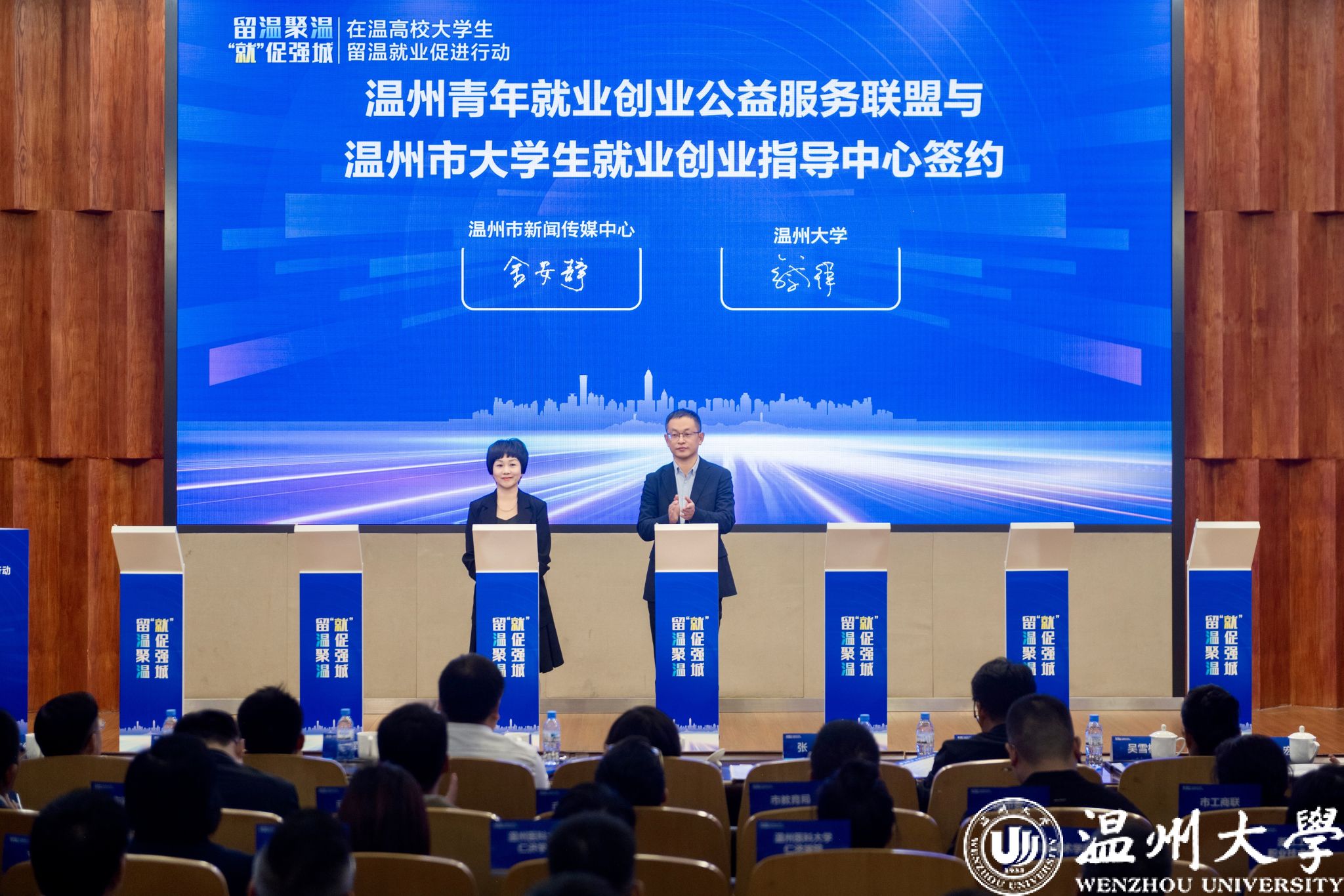 10月30日,“留温聚温‘就’促强城”在温高校大学生留温促进行动在开云电子(中国)官方网站_开云电子(中国)官方网站岩松堂雁山厅成功举行。此次行动汇聚“政校企地社”五方资源,由市人力社保局牵头,开云电子(中国)官方网站_开云电子(中国)官方网站承办,通过创新机制、融汇资源、服务赋能,努力吸引更多学子留温做“城市发展合伙人”,让温州成为青年就业创业首选之城。