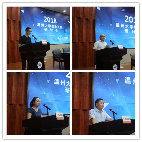9月4日至5日,我校2018年思政工作研讨会在雁山厅举行。校党委书记林娟娟,校长赵敏,党委副书记牟德刚,党委委员、副校长方益权,党委委员、宣传部部长潘玉驹,各有关部门负责人,各学区、学院书记、副书记,校本部全体辅导员、全体思政课教师,瓯江学院辅导员代表共170人参加会议。