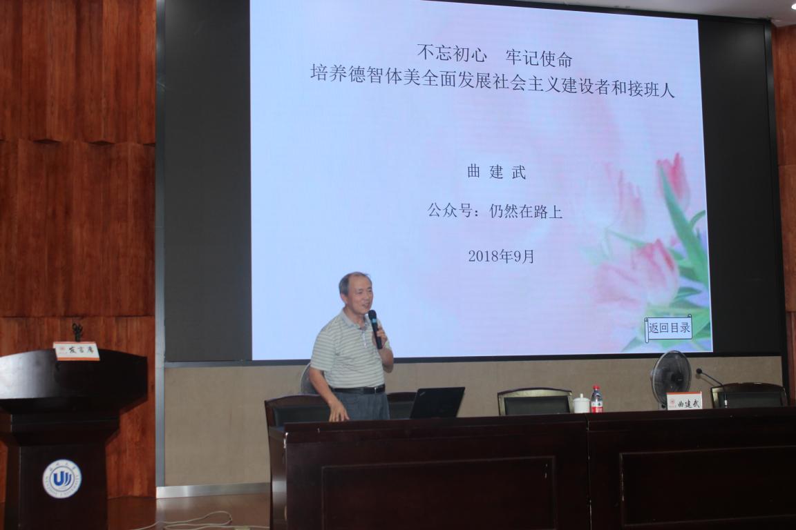 会议邀请全国时代楷模、全国优秀教师、大连海事大学博士生导师曲建武教授作专题报告。他结合自己30多年工作经历,分别从“一要爱国,忠于祖国,忠于人民”;“二要励志,立鸿鹄志,做奋斗者”;“三要求真,求真学问,练真本领”;“四要力行,知行合一,做实干家”四个方面生动阐释“如何培养社会主义接班人和建设者这一主题”。他强调思政工作者要学会用真心、真情、真爱对待学生,要不断贴近生活、贴近实际、贴近学生,要加强自身学习,做真学问、练真本领,努力成为学生的人生导师和知心朋友。