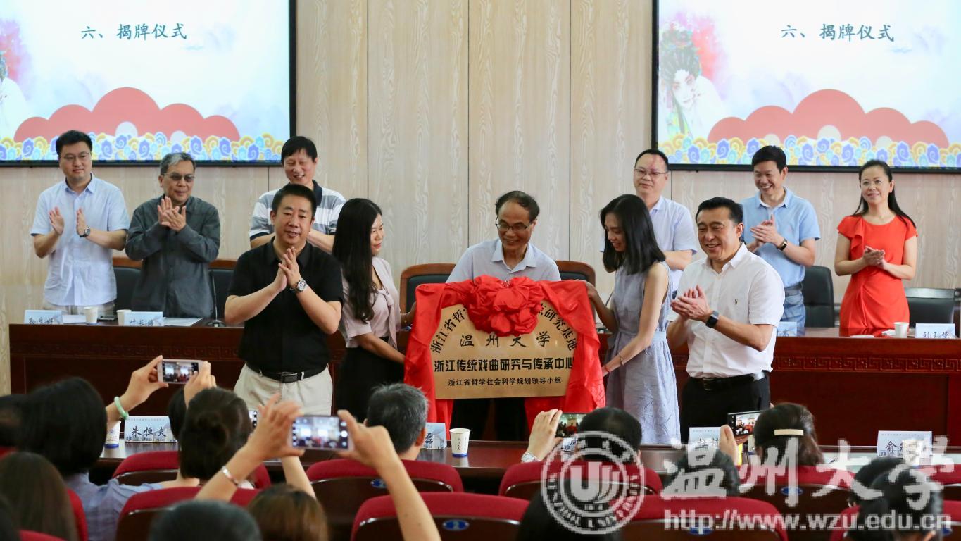 6月28日上午,浙江传统戏曲研究与传承学术研讨会暨浙江省哲学社会科学重点研究基地“浙江传统戏曲研究与传承中心”揭牌仪式在我校人文楼203学术报告厅举行。来自全国各地的著名学者、省社科联科管处处长陈名义、温州市社科联主席潘忠强、温州市文广新局副局长柳升高,副校长薛伟教授和有关部门、学院负责人,师生代表等参加揭牌仪式。