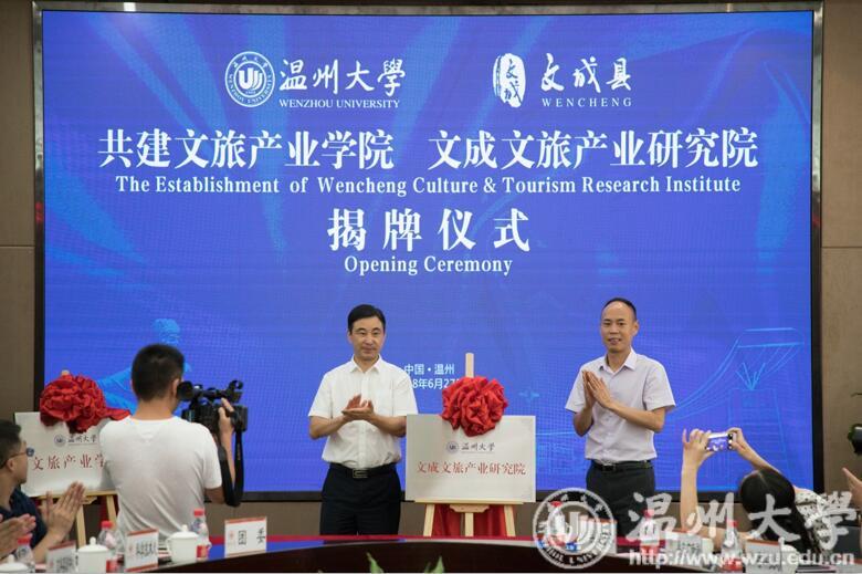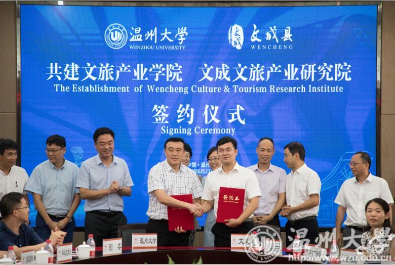6月27日,我校与文成县人民政府正式签约,共建文旅产业学院、文旅产业研究院。此举落实在产城融合战略规划、产业对接、人才培养等各方面,直指文旅产业在新一轮消费升级中的新变化,将有效助力文成全域旅游示范的建设,响应我省实施大花园建设行动计划,全面推进西部生态休闲产业带建设,推动乡村振兴,促进西部绿色崛起,打开“两山”转化通道的有力举措,也是同步规划产教融合与经济社会发展,支持健康、养老、文化、旅游等领域专业发展与融合,适应产业变化及新经济发展的重要行动,将为“诗化温州”的建设作出贡献。