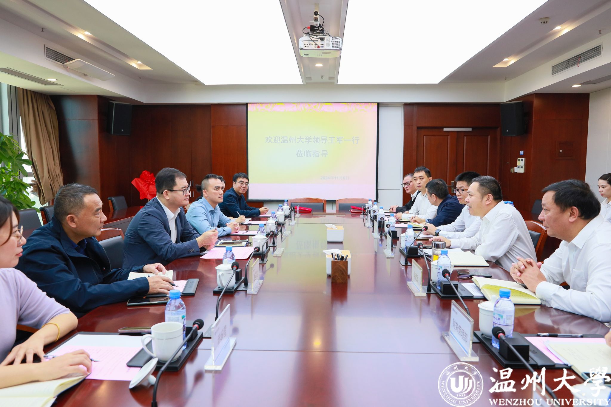 温州交运集团董事长杨茂富对我校一行的到来表示欢迎。他介绍了温州交运集团近年来在市场化改革、企业运营、平安维稳等方面的有关情况。他表示,双方将以合作为契机,充分发挥各自优势,为服务地方经济社会发展贡献双方的智慧与力量。