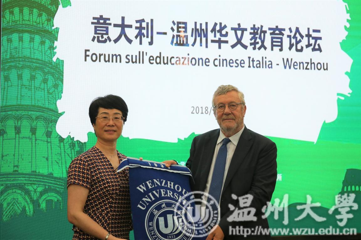 5月28日上午,意大利-温州华文教育论坛在我校召开。校党委书记林娟娟会见意大利拉齐奥大区教育厅厅长Gildo De Angelis等意大利教育代表团成员并互赠纪念品,副校长钱强、温州市外侨办副主任朱玉贵分别致欢迎辞。