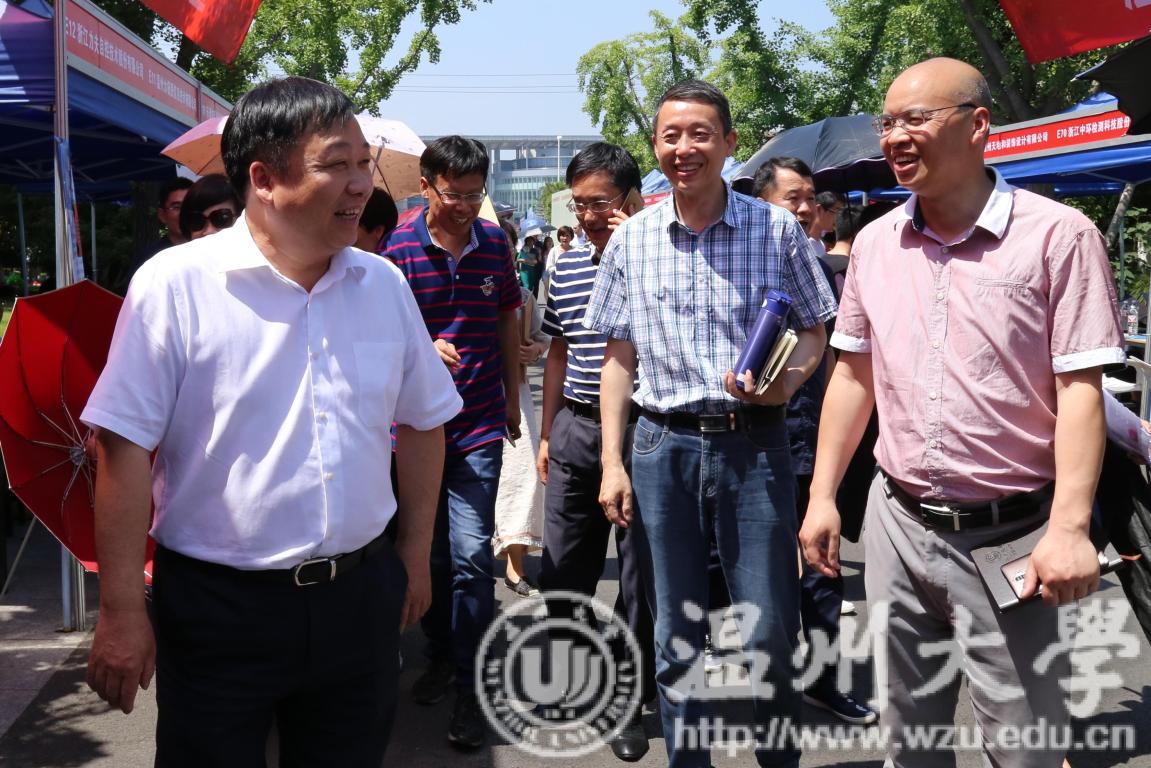 5月16日,我校2018届毕业生春季供需洽谈会暨2019届毕业生实习实训招聘会在大学生活动中心举行。校党委副书记赵敏,温州市妇联副主席蔡仁燕、温州市人才管理服务办公室主任季亚斐、瓯海区人力资源和社会保障局副局长姜林海等到现场指导工作。