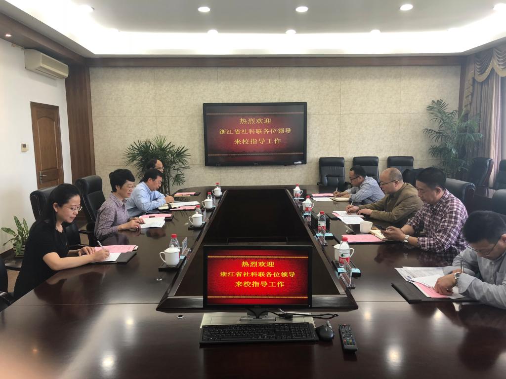 4月25日上午,浙江省社科联秘书长谢利根、科管处处长陈名义一行来我校走访调研,校党委书记林娟娟,人事处、人文社科处、省哲社重点研究基地等单位负责人参加座谈。