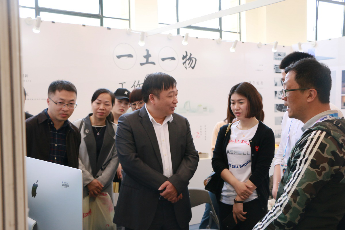 图4 校党委副书记赵敏现场慰问“一土一物”工作坊参展师生