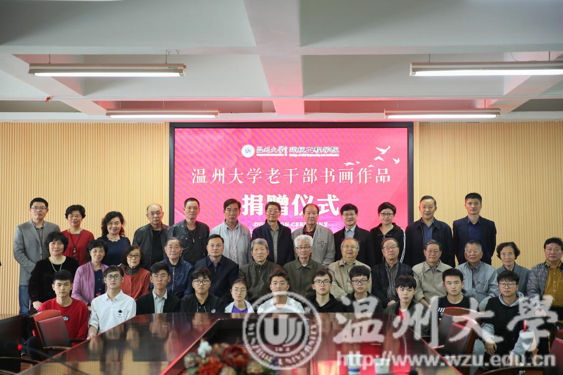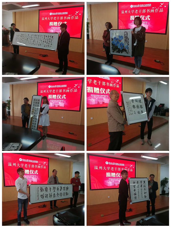 春暖大地,绿意盎然。4月4日上午,我校老干部书画院老书画家一行二十人,来到学校茶山南校区建筑工程学院,向该学院赠送书画作品,受到师生们的热烈欢迎。校党委委员、宣传部长潘玉驹,老领导金礼义、林选清,老书画家与师生代表近60人参加捐赠仪式。