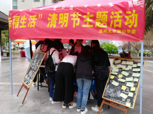 溯初学区组织开展“缅怀革命先烈 感恩幸福生活”清明节主题活动。在溯初广场,学子通过手绘风筝、书写文字等方式缅怀先烈。学区通过“寄思”许愿瓶和有奖竞答等方式,倡导大学生以更简约、环保的文明方式寄托哀思,发扬传承清明节传统文化。