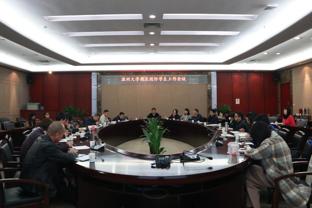 1月17日,我校期末国际学生工作会议在岩松堂白鹿厅召开。相关部门、学院负责人参加会议,副校长钱强主持。