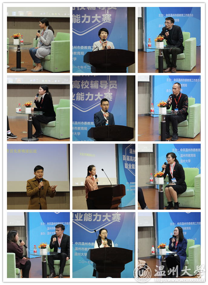12月27日,由温州市教育工委、市教育局主办,我校承办的市首届高校辅导员职业能力大赛决赛举行。来自全市12所高校的18名辅导员围绕业务知识和能力展开 “大比拼”。比赛期间,温州市教育局为我校授牌,温州市高校辅导员培训和研修基地正式落户学校。市教育工委副书记林照光、校党委副书记赵敏出席,在温各高校学工部负责人担任评委,来自各高校的150余名师生参加观摩。 此次温州市高校辅导员职业能力大赛的举办旨在贯彻落实党的十九大和全国全省高校思想政治工作会议精神,执行《高等学校辅导员职业能力标准(暂行)和《普通高等学校辅导员队伍建设规定》,进一步搭建全市辅导员沟通交流、相互学习的平台,加强温州市高校辅导员队伍专业化职业化建设,提升学生思想政治教育工作水平。大赛共分为初赛、复赛和决赛三个部分,全部赛制参照浙江省辅导员职业能力大赛进行。初赛由在温各高校进行校内选拔,复赛分为主题班会和辅导员基础知识测试两项,决赛分为主题演讲、案例分析、谈心谈话情景再现三项。比赛内容全部围绕辅导员日常工作的常识和业务内容进行,全面考察辅导员的思想理论水平、语言表达能力、逻辑思维能力和沟通处理问题能力。经过激烈角逐,我校张凤姣老师荣获一等奖,开云电子(中国)官方网站_开云电子(中国)官方网站获优秀组织奖。