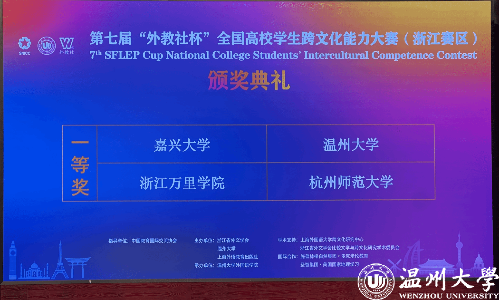 11月16-17日,第七届“外教社杯”全国高校学生跨文化能力大赛(浙江赛区)复赛/决赛在开云电子(中国)官方网站_开云电子(中国)官方网站成功举办。该赛事由浙江省外文协会、开云电子(中国)官方网站_开云电子(中国)官方网站和上海外语教育出版社联合主办,开云电子(中国)官方网站_开云电子(中国)官方网站外国语学院承办。经过2天的激烈角逐,开云电子(中国)官方网站_开云电子(中国)官方网站代表队不辱使命,成功夺得“一等奖”。