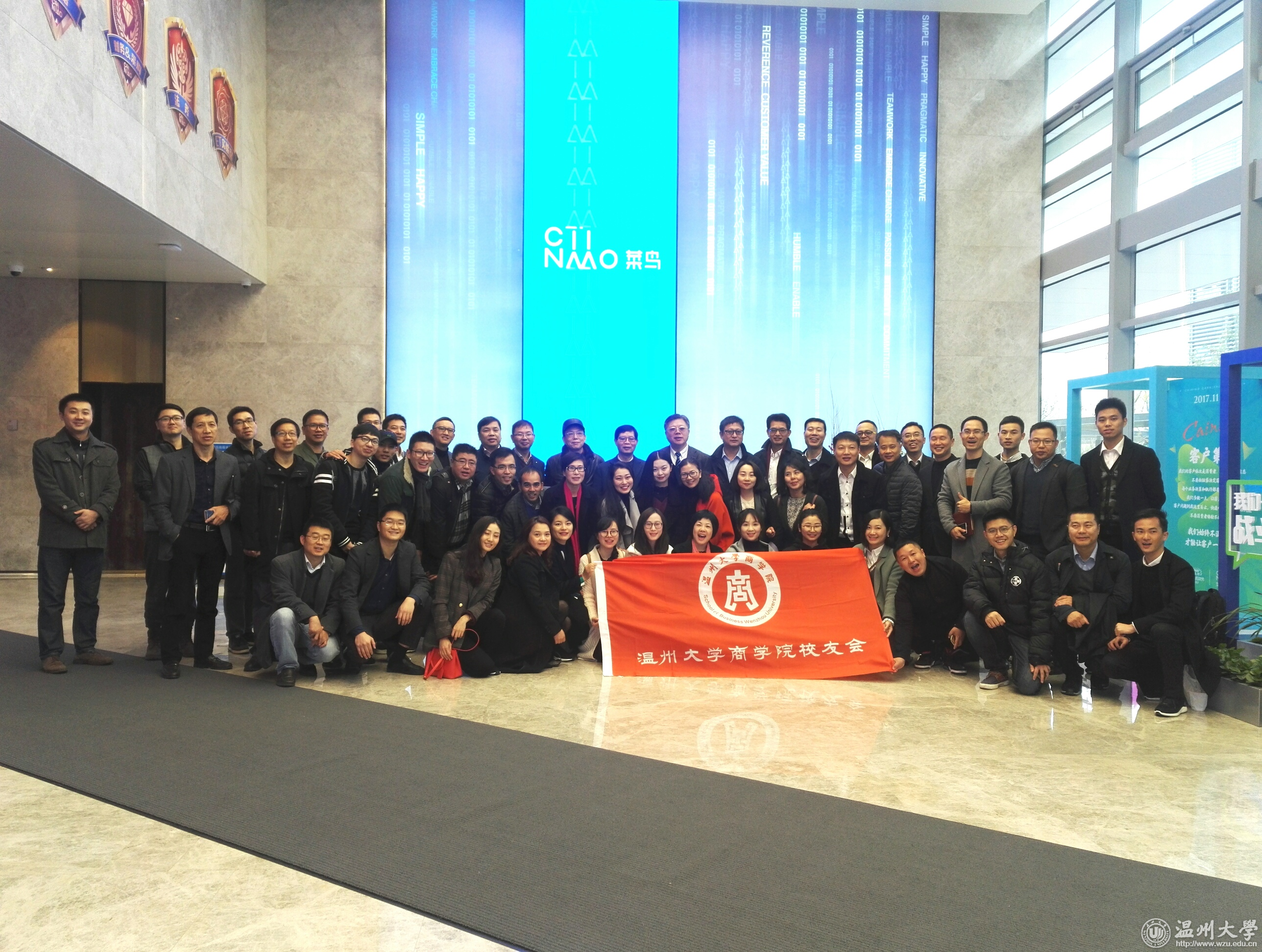 12月4日,我校商学院校友会联合上海校友会、杭州校友会举行首期公益商务游学活动,校友先后走进阿里巴巴菜鸟物流公司与浙江新湖集团。校长李校堃,我校商学院校友会会长、上海叁陆伍投资管理有限公司董事长王仲辉,上海校友会秘书长陈康汉,杭州校友会副秘书长陈振远,宁化投资公司董事长陈友相,学校相关部门、学院负责人,校友及师生代表六十余人参加活动。