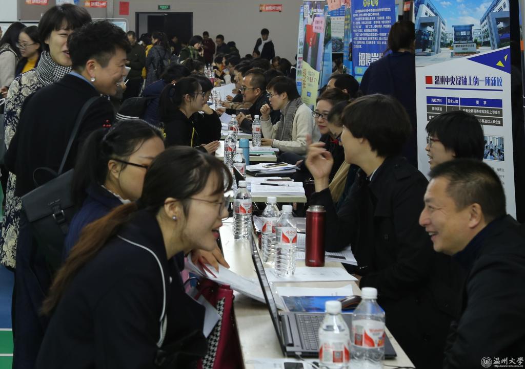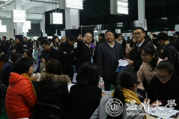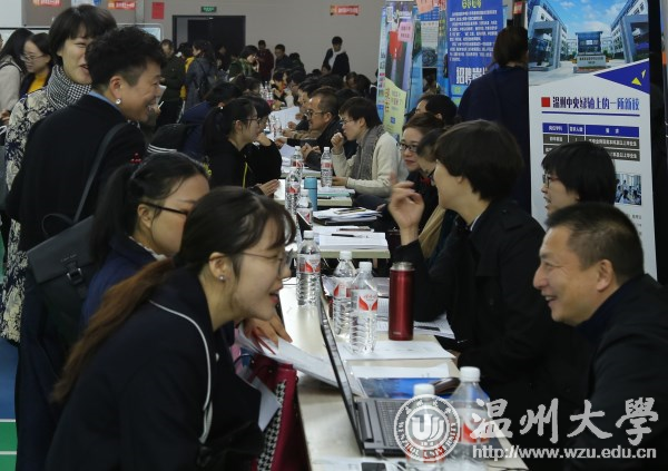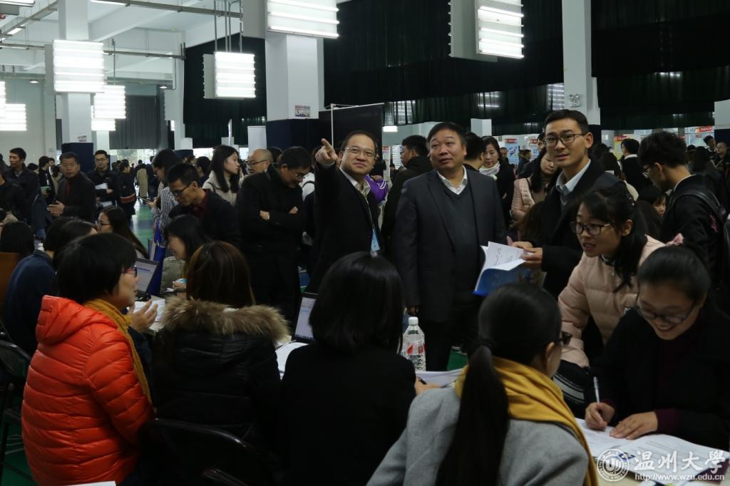 11月25日,温州市教育局组团来我校举行2018届师范类毕业生提前批专场招聘会。温州市教育局党委委员、副局长伍挺、党委委员、纪检组长蔡亚里、人事处处长王传旺,温州市人力资源和社会保障局副局长胡正长、人才开发和市场处处长潘锦灿等到现场指导;学校党委副书记赵敏到场看望广大招聘工作人员,听取教育局、人社局领导以及中小学校长对我校师范类人才培养质量的意见和建议,并与毕业生亲切交流。 招聘会上,市教育局直属公办学校和民办学校以及龙湾区、洞头区、乐清市、永嘉县、文成县、平阳县、泰顺县、苍南县等县市区教育局115个单位提供548个教师岗位,其中市教育局直属公办学校提供教师岗位70个,我校2018届师范类毕业生、硕士毕业生以及其他院校师范类毕业生1000余人参会应聘。从现场了解到,体育、历史、中文、英语、数学、政治等学科的毕业生需求量较往年有所增加,尤其是优秀的体育男生倍受青睐。 近年来,温州市教育局、温州市人力资源和社会保障局对我校毕业生就业工作越来越关怀。温州市教育局以人才引进方式提前来我校招聘师范类毕业生,把招聘对象的范围首次扩大到前6个学期综合考评排名班级前35%,这是温州市师范类优秀毕业生招聘政策的重大突破。