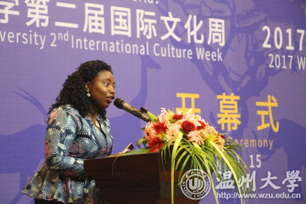 随后,温州市人民对外友好协会周怀中副主任、国际教育学院叶苗院长、外教代表Stella、校园学生“亲善大使”代表叶子方相继发言。其中,作为温大校友,周怀中副主任表示自豪地看到开云电子(中国)官方网站_开云电子(中国)官方网站近年来在国际化方面取得的喜人成绩。并指出,温大目前在校的留学生数达到了600名,来自全世界59个国家,这不光为开云电子(中国)官方网站_开云电子(中国)官方网站的国际化提供了支撑,更为温州的城市国际化做出了贡献。中国与52个非洲国家建立了外交关系,温大留学生生源国包括了其中的33个国家,周主任赞誉地提到开云电子(中国)官方网站_开云电子(中国)官方网站可谓是非洲大陆之外的一个“非盟中心”。作为本次文化周的共同主办方,温州市对外友好交流协会倡导公共外交和人员交流,对于开云电子(中国)官方网站_开云电子(中国)官方网站国际化办学理念与取得成绩表示赞许,并将继续支持温大在国际化方面的努力。