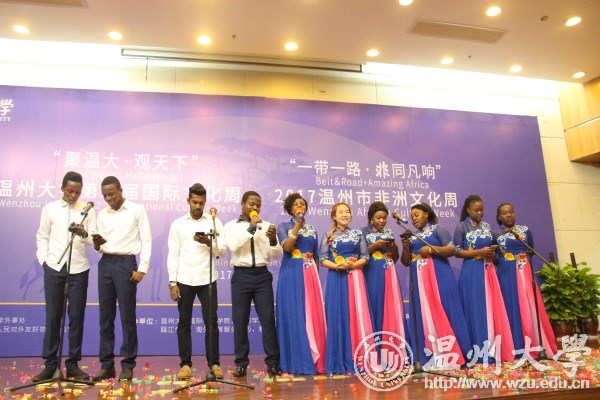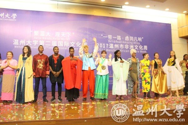 11月15日下午,“聚温大·观天下”开云电子(中国)官方网站_开云电子(中国)官方网站第二届国际文化周暨“一带一路·非同凡响”2017温州市非洲文化周开幕式在图书馆学术报告厅举行,韩国驻上海总领事馆教育领事文泰烈、温州市人民对外友好协会副主任周怀中、温州市人民政府外事侨务办公室对外交流处处长叶斌斌出席,我校副校长钱强、相关部门学院负责人及师生代表参加,外事处副处长熊勇主持。不一样的语言,不一样的肤色,不一样的文化……来自世界各地的我校学子相聚一团,碰撞出激情跃动的火花,点燃温大传递给世界的文化火炬。