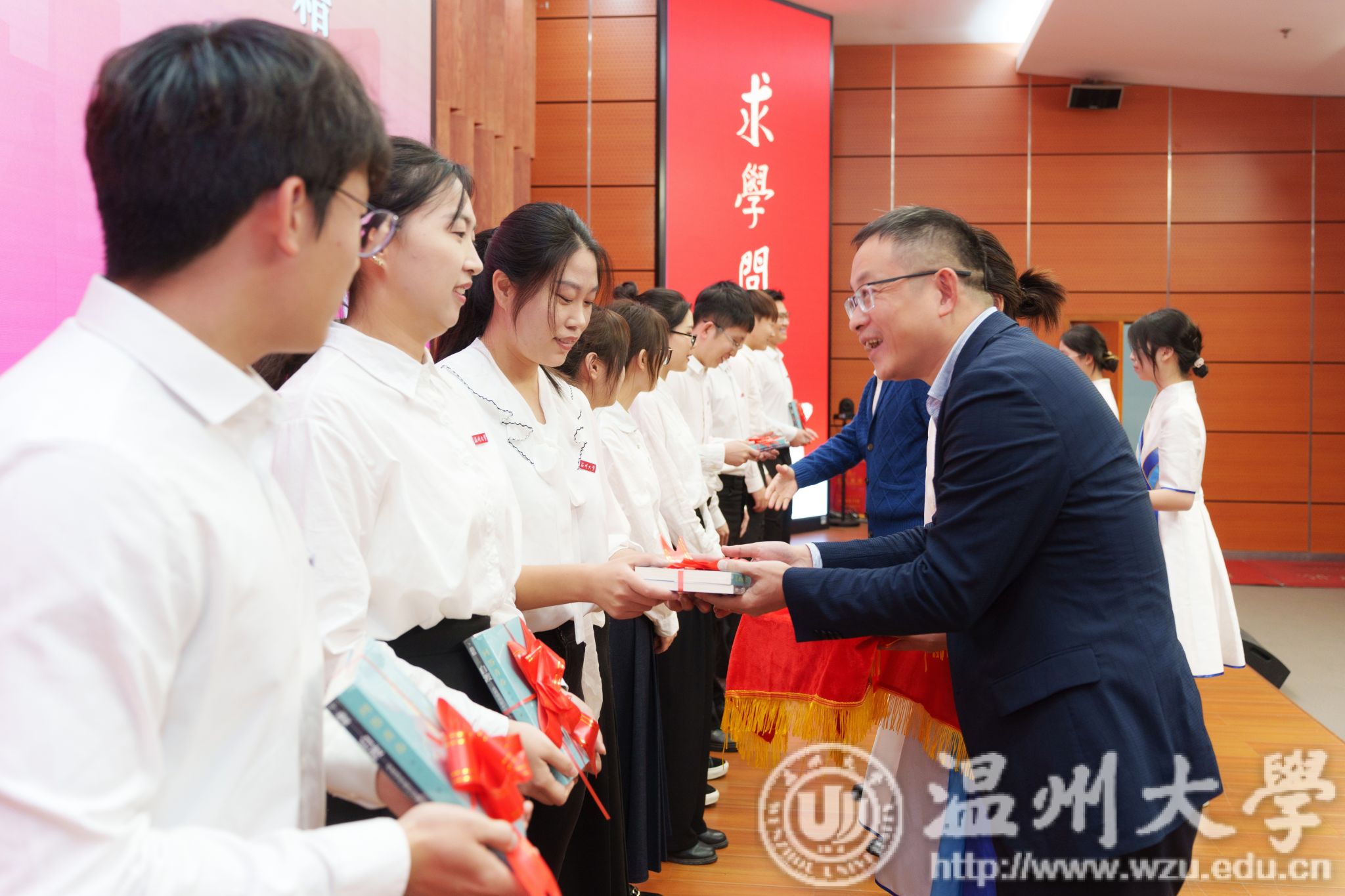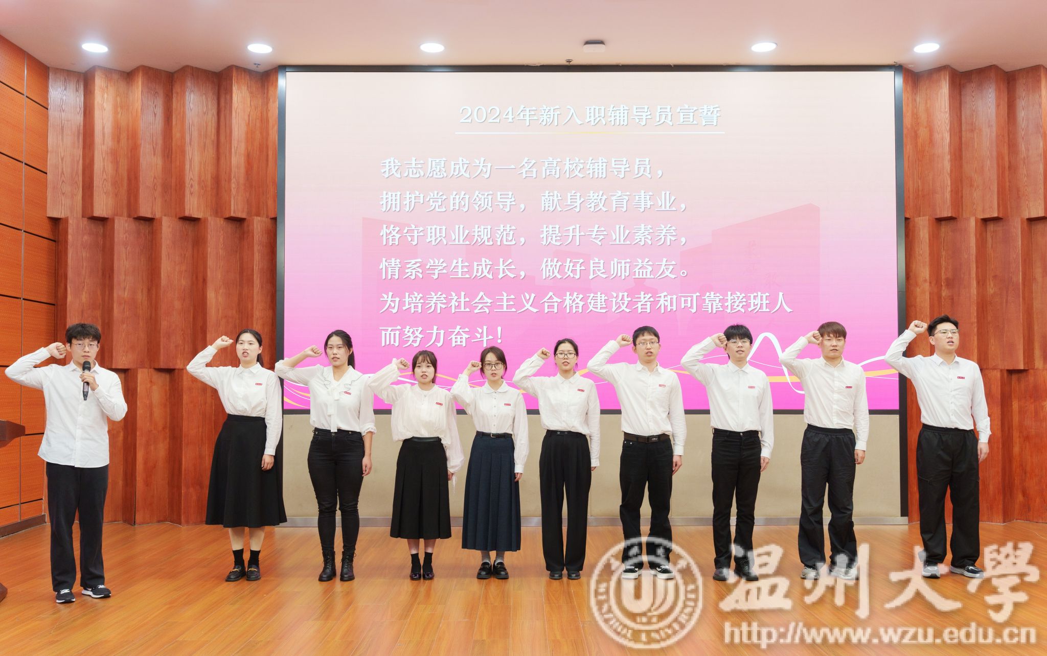 仪式上,2024年新入职辅导员庄严宣誓,表达了他们为党育人、为国育才的决心和信念。校学生工作委员会委员为新入职辅导员赠送纪念书籍。