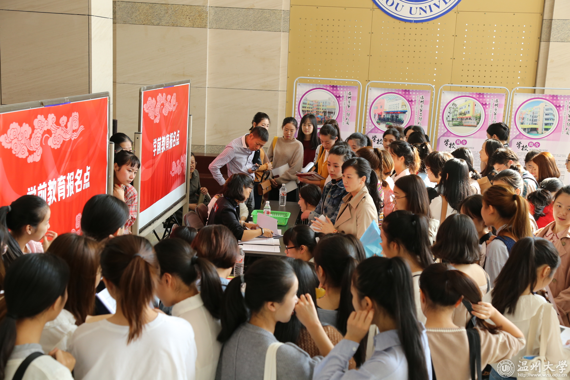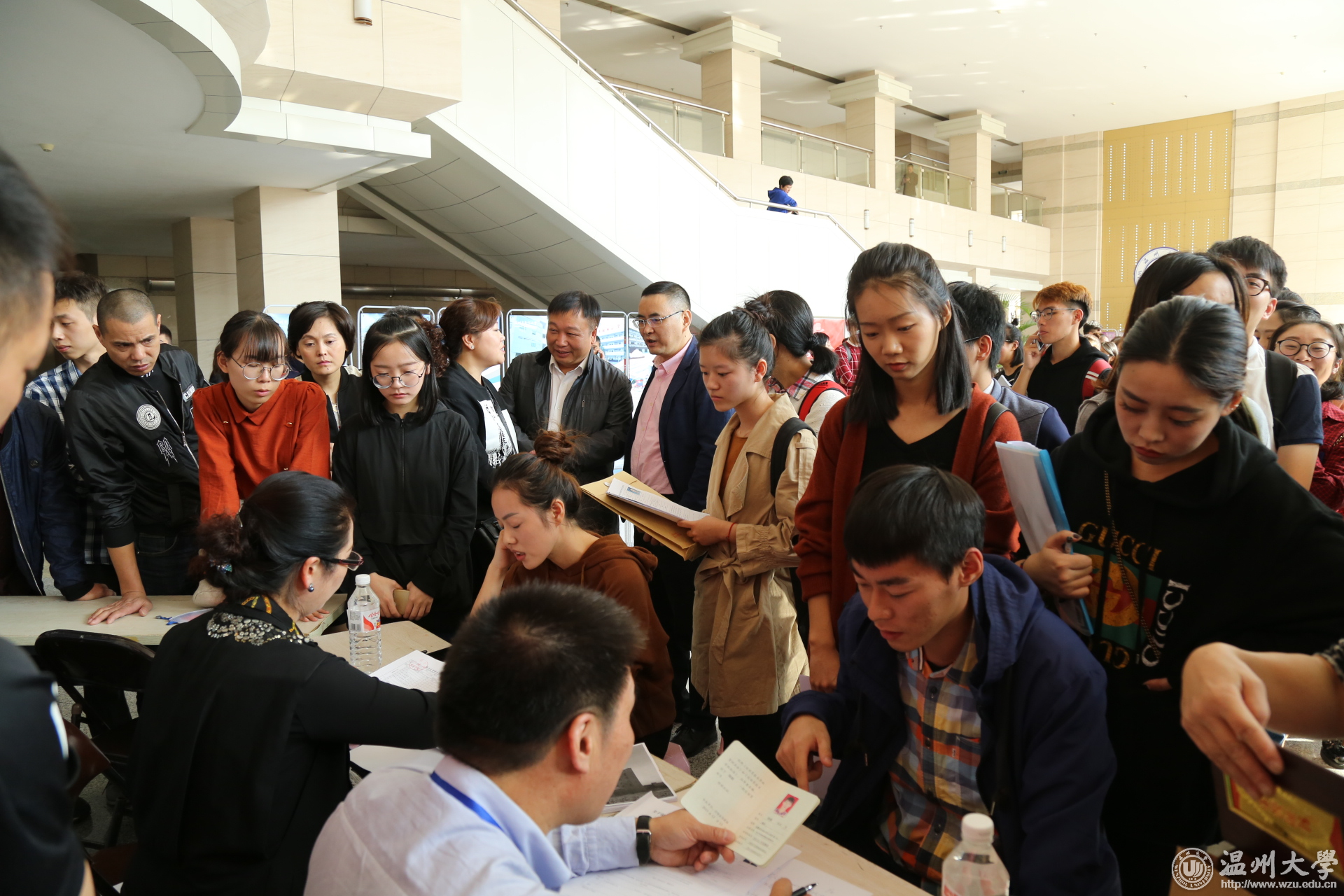 10月28日,温州市鹿城区2017年首场高校毕业生招聘会在开云电子(中国)官方网站_开云电子(中国)官方网站举行。学校党委副书记赵敏,温州市教育局副调研员、鹿城区教育局党委书记张维凯、鹿城区教育局局长杨明明、党委副书记、副局长成小华,鹿城区人力资源和社会保障局局长吴晓贵、副局长陈煦等领导参加招聘会开场仪式。