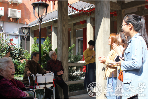 美术与设计学院“艺家人”青年志愿者协会在名盛敬老院开展重阳节关爱老人志愿服务活动。志愿者为老人们表演精心准备的节目,敬老院的气氛一下子欢快了起来,精彩的演出赢得了老人们的掌声和称赞,现场其乐融融。
