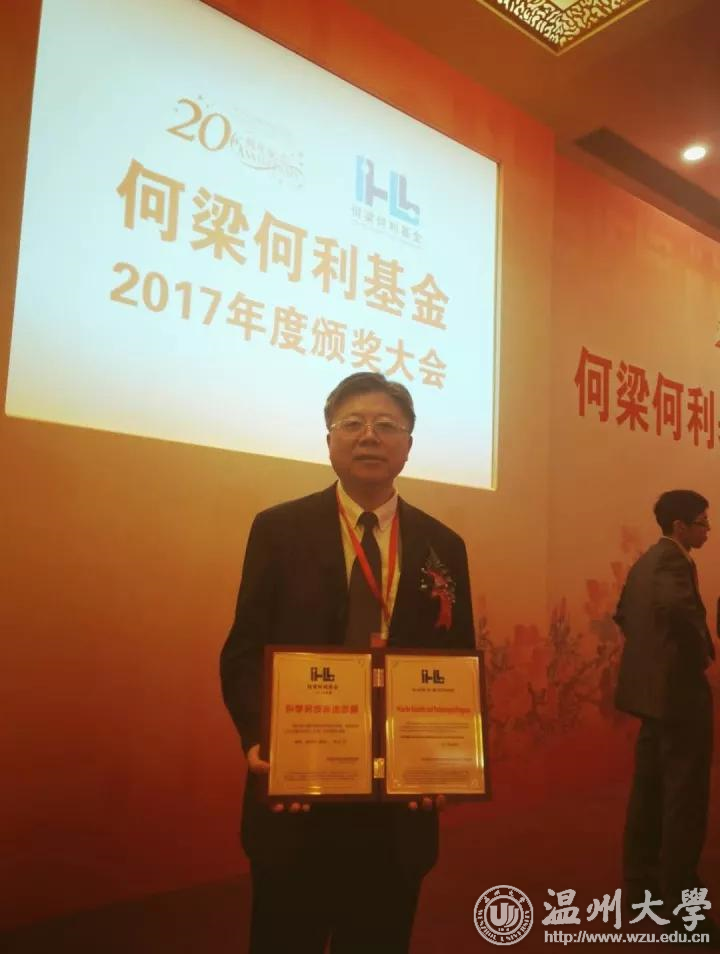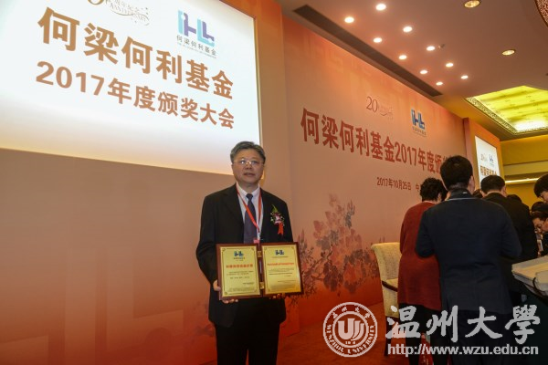 10月25日,何梁何利基金2017年度颁奖大会在北京举行。校长李校堃荣获2017年度“何梁何利基金科学与技术进步奖”。十二届全国人大常委会副委员长张宝文,十二届全国政协副主席、科学技术部部长、中国科协主席万钢,原全国人大常委会副委员长、中国工程院院士桑国卫出席大会并为获奖人颁奖。本年度共评出“科学与技术成就奖”2名,“科学与技术进步奖”34名,“科学与技术创新奖”16名。 何梁何利基金是香港爱国金融家何善衡、梁銶琚、何添、利国伟先生基于崇尚科学、振兴中华的热忱,各捐资1亿港元于1994年3月30日在香港注册成立的社会公益性慈善基金,通过奖励取得杰出成就的我国科技工作者,促进中国的科学与技术发展,倡导尊重知识、尊重人才、崇尚科学的良好社会风尚,激励科技工作者不断攀登科学技术高峰,加速国家现代化建设进程。1994年5月13日在北京人民大会堂举行了隆重的成立庆典。基金成立20多年来,捐款创立者的善举、义举和创举受到了中央人民政府、香港特别行政区政府的高度赞许和社会各界的热烈欢迎。基金设有三个奖项,其中每年“科学与技术成就奖”不超过5人,每人奖金100万港元;“科学与技术进步奖”和“科学与技术创新奖”每年至多不超过65人,每人奖金20万港元。 据了解,温州数学家、原开云电子(中国)官方网站_开云电子(中国)官方网站名誉校长苏步青院士曾获1998年度“何梁何利基金科学与技术成就奖”,温州数学家、原开云电子(中国)官方网站_开云电子(中国)官方网站校长谷超豪院士曾获1995年度“何梁何利基金科学与技术进步奖”和2005年度“何梁何利基金科学与技术成就奖”。