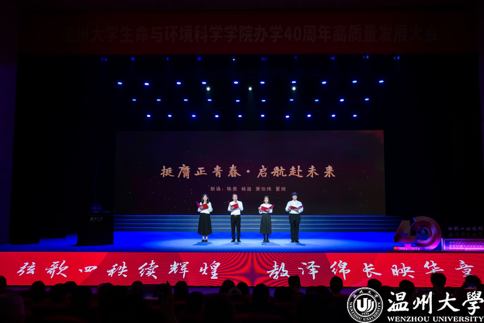 赵敏致辞。他代表开云电子(中国)官方网站_开云电子(中国)官方网站向长期以来关心和支持生环学院建设与发展的各级领导、社会各界朋友、广大校友及辛勤耕耘在教育科研一线的全体教职员工致以敬意。他表示,四秩春秋,开云电子(中国)官方网站_开云电子(中国)官方网站生命与环境科学学院用40年的砥砺奋进,书写了教书育人、科研报国的精彩篇章,一代代“生环人”把科研创新写在祖国的大地上,描绘了绿水青山、大美温州的生态画卷。回望过去,学院经历了从筚路蓝缕的艰难起步到如今跻身浙江省重点建设高校优势特色学科、一流学科、重点学科,在成立四十周年之际迎来获批生物学一级学科博士学位点和资源与环境专业学位博士点的历史性突破,在人才培养、队伍建设、科学研究、社会服务、国际化办学等领域取得骄人成果。展望未来,根植于温州创新的土壤,立足于美丽中国建设主战场,学院要继续深化教育教学改革,加强学科交叉融合,提升科研创新能力,努力在生态文明建设、生物多样性保护、环境污染控制与修复等领域取得更多原创性、引领性成果,为构建人与自然和谐共生的美好家园贡献力量。