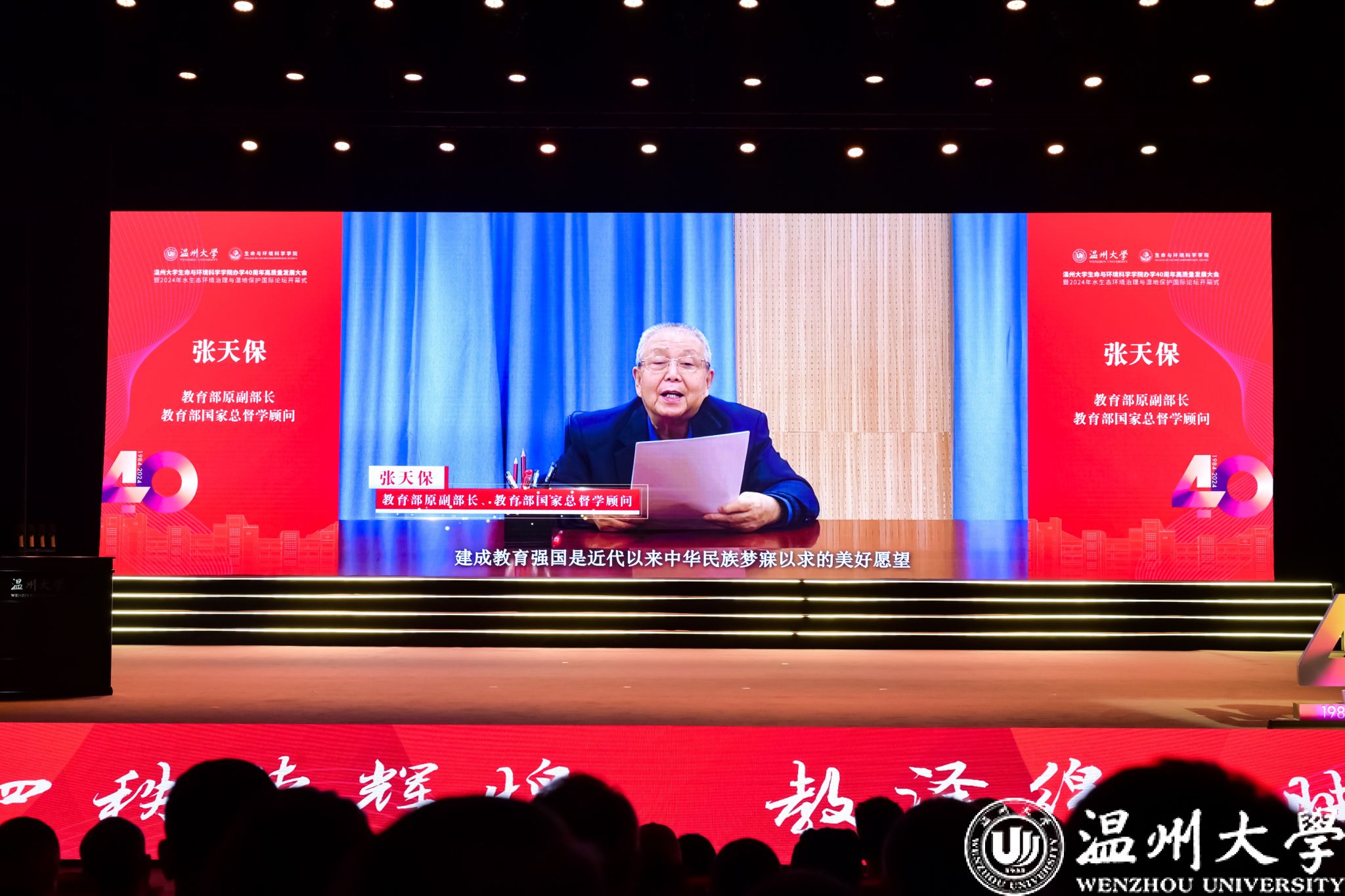 11月23日上午,开云电子(中国)官方网站_开云电子(中国)官方网站生命与环境科学学院办学40周年高质量发展大会暨2024年水生态环境治理与湿地保护国际论坛在开云电子(中国)官方网站_开云电子(中国)官方网站育英大礼堂举行。教育部原副部长、教育部国家总督学顾问张天保,国家林业和草原局湿地管理司原副司长、一级巡视员鲍达明,开云电子(中国)官方网站_开云电子(中国)官方网站党委书记钱强,开云电子(中国)官方网站_开云电子(中国)官方网站校长赵敏,中国科学院院士金振民,中国工程院院士侯立安,中国工程院院士徐祖信,加拿大皇家科学院院士甘延太,浙江省统计局党组副书记、副局长、一级巡视员吴家曦,浙江省嘉兴市人民政府副市长林万乐,开云电子(中国)官方网站_开云电子(中国)官方网站副校长刘玉侠等出席大会。
